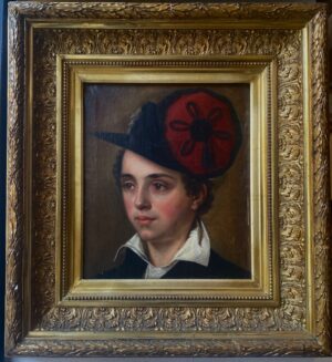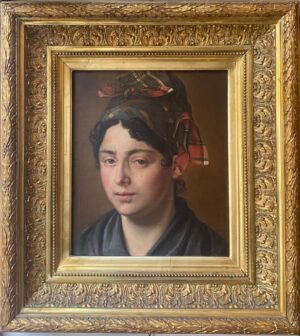 Olio su tela raffigurante volto di fanciulla, XIX sec.