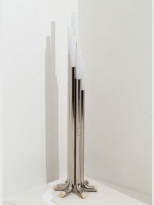 Lampada da terra italiana anni 60 in metallo cromato e vetro opalino – produzione Milano