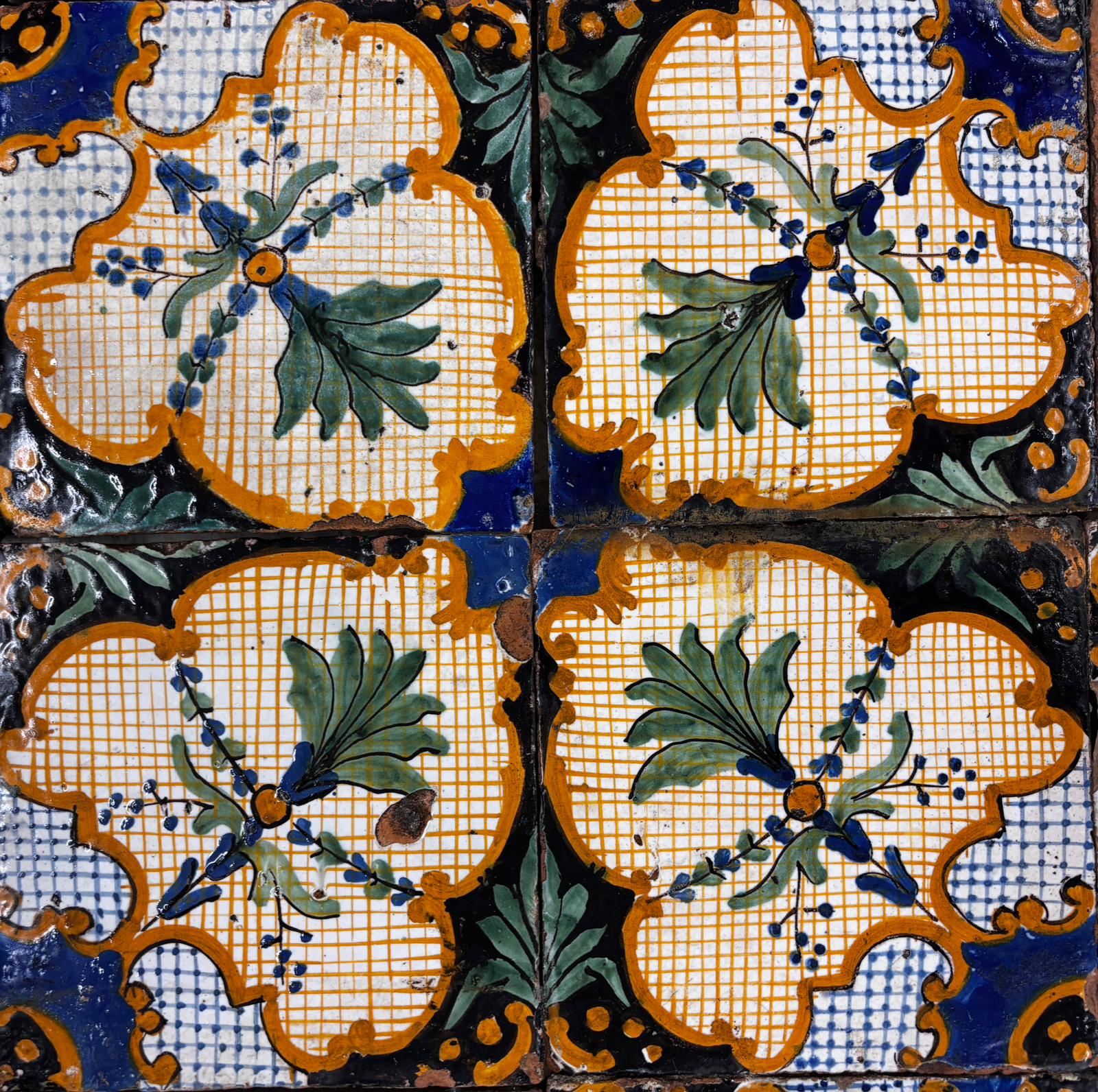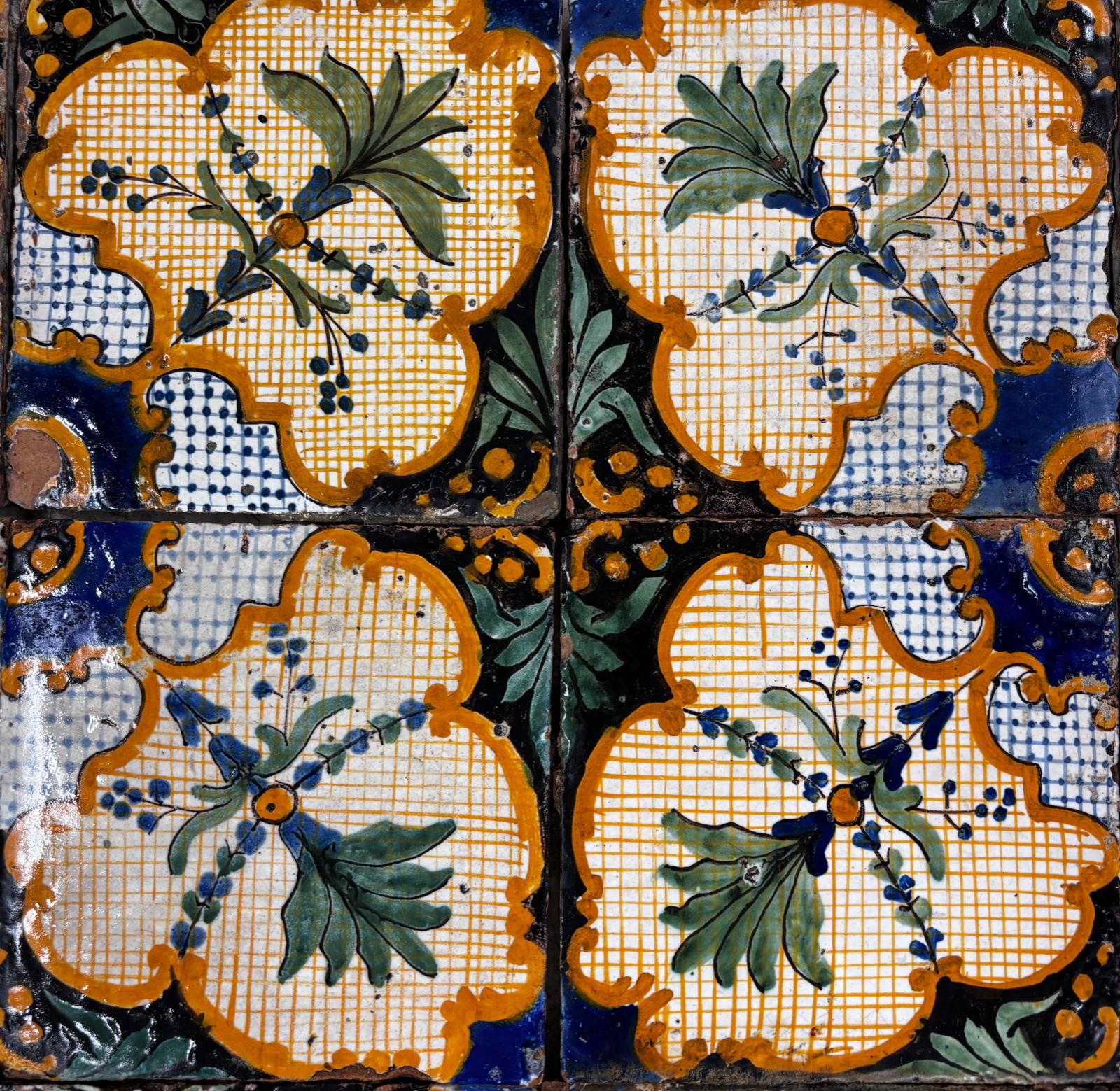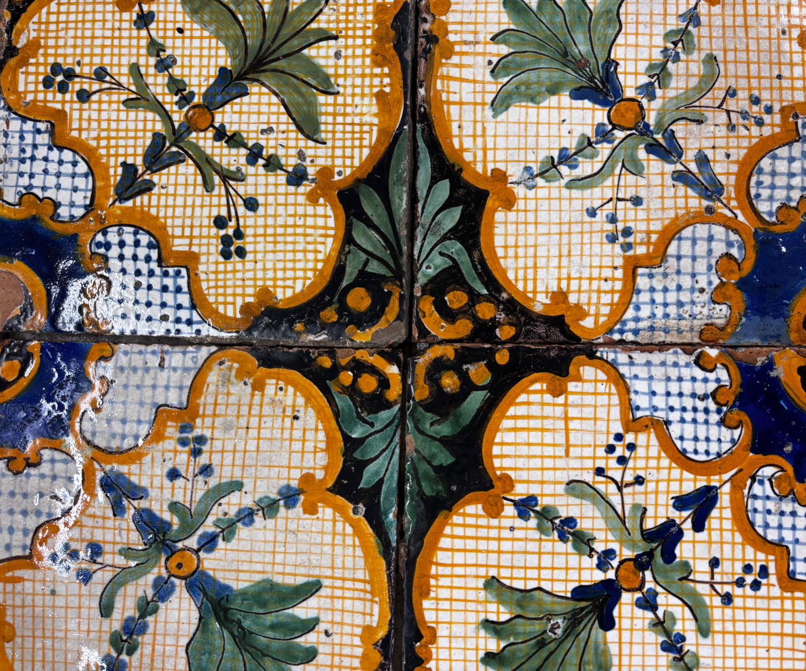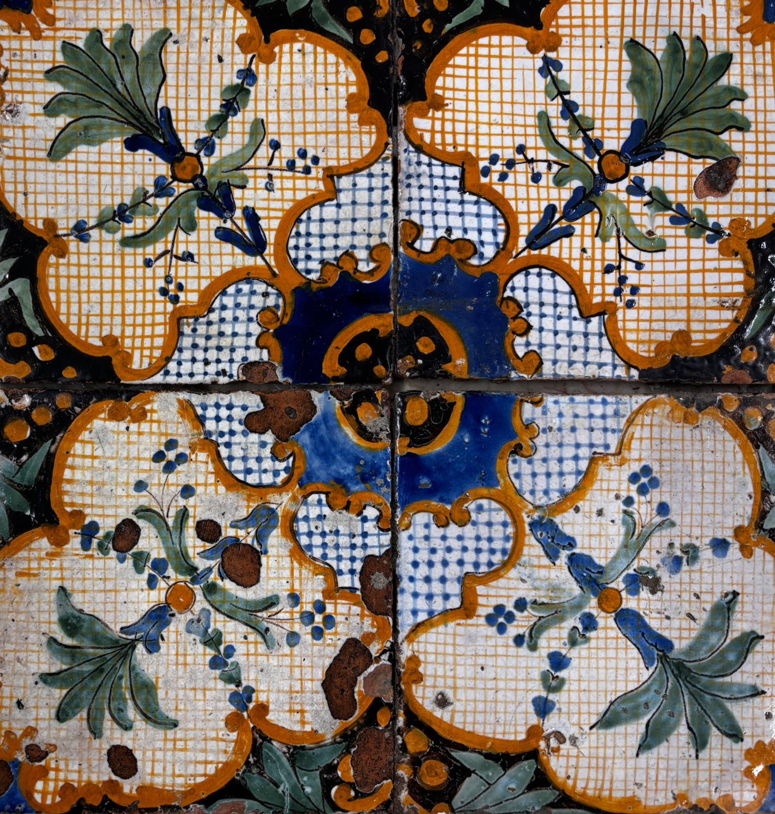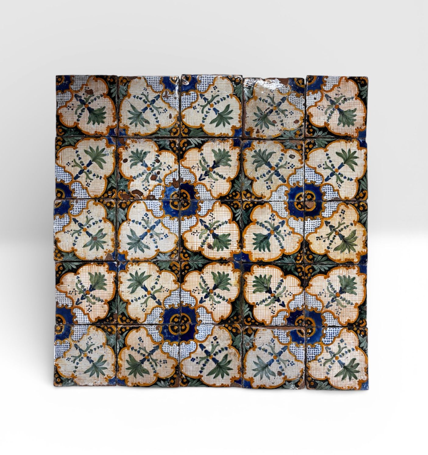 raro lotto di pavimentazione originale in maiolica smaltata su base in cotto, attribuibile alla “Fabbrica Premiato dei Colonesi”, databile intorno al 1830.