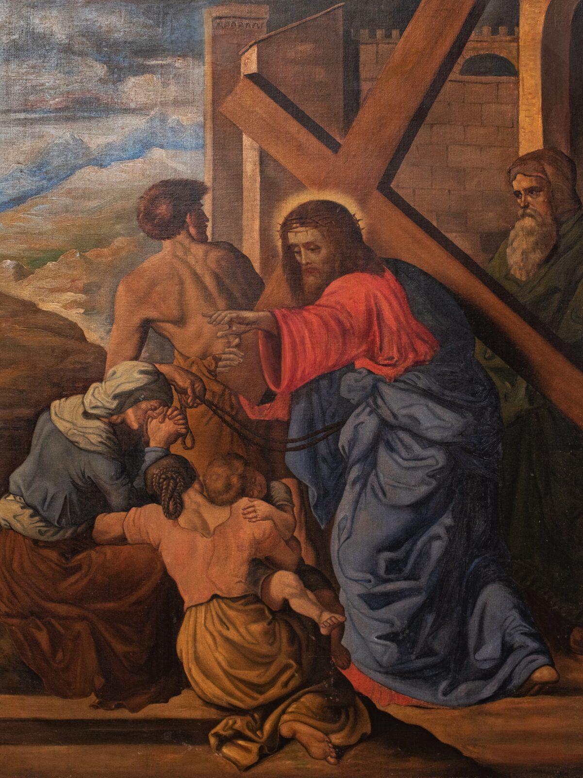 Oil on canvas depicting the scene of the 3rd station of the Via Crucis,