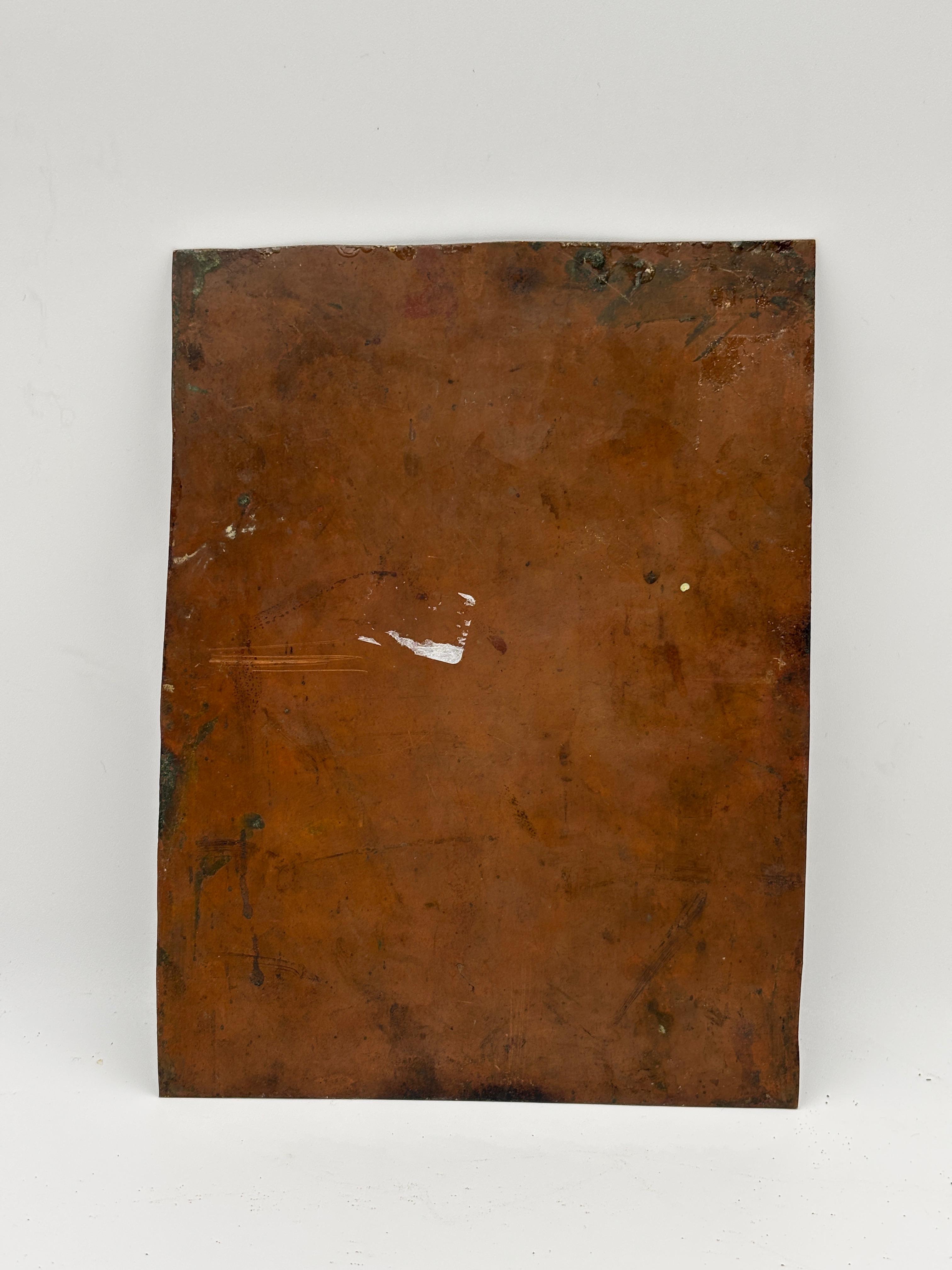 L’opera è eseguita su lastra di rame, supporto raro e pregiato che permette una stesura fine, colori brillanti e duraturi. I panneggi ricchi, i volti intensi e il gusto compositivo denotano un linguaggio tardo-manierista con influssi veneti.