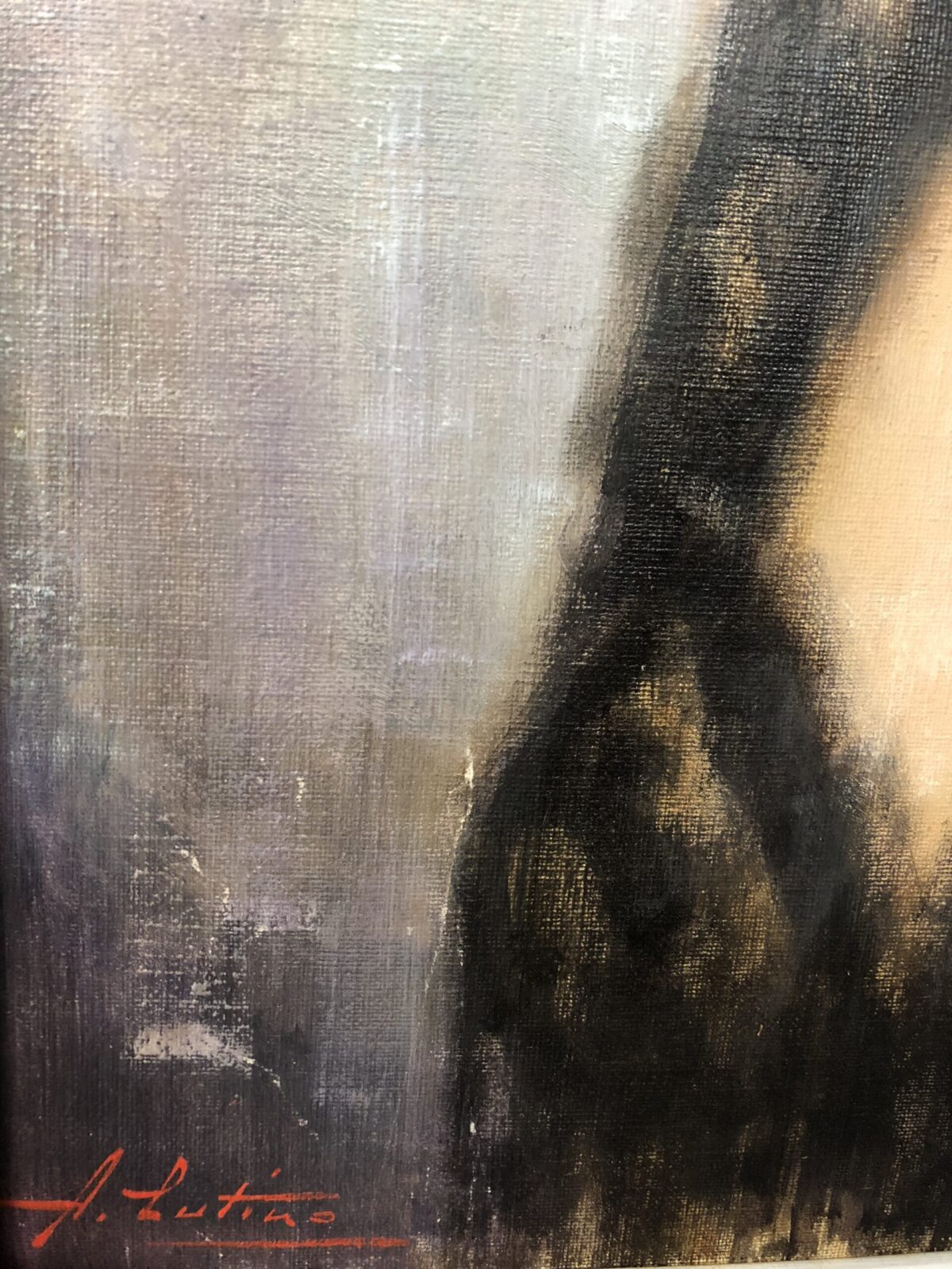 Cutino in quest’opera ritrae un mezzo busto di donna, volta di tre quarti.