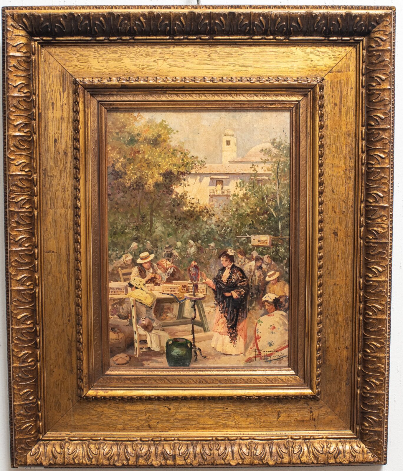 Olio su tavola, raffigurante mercato di Sivilla.