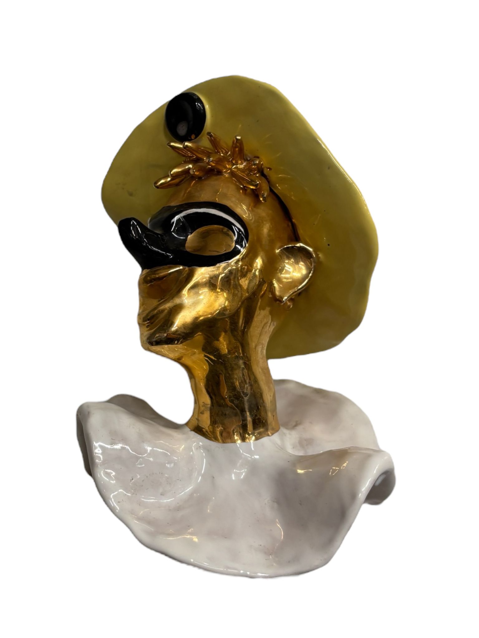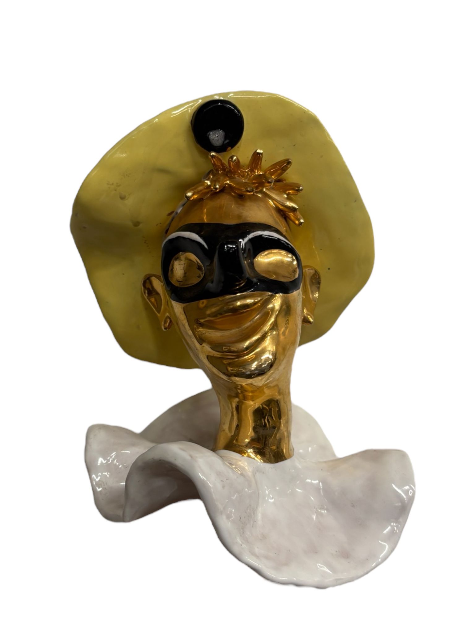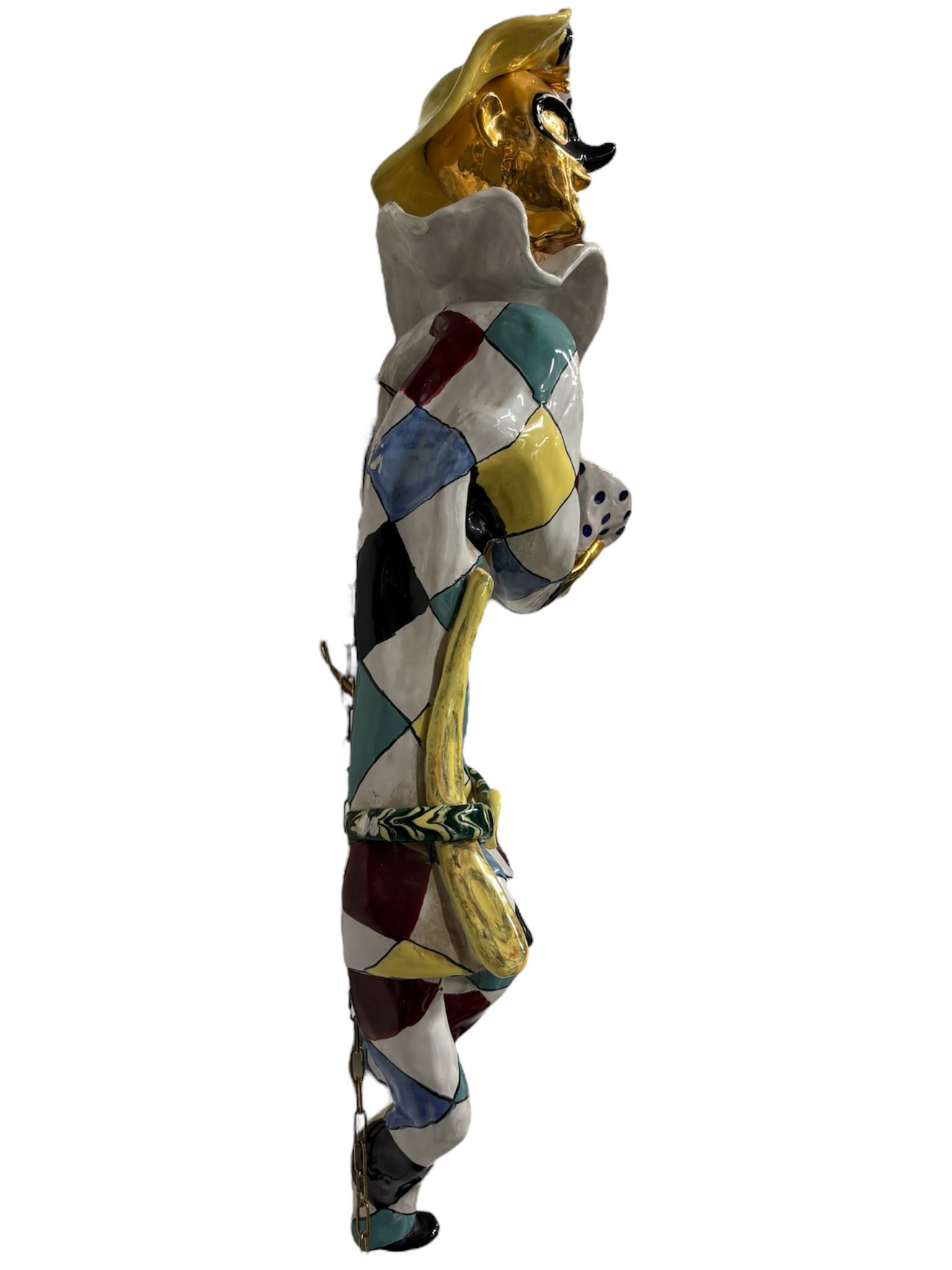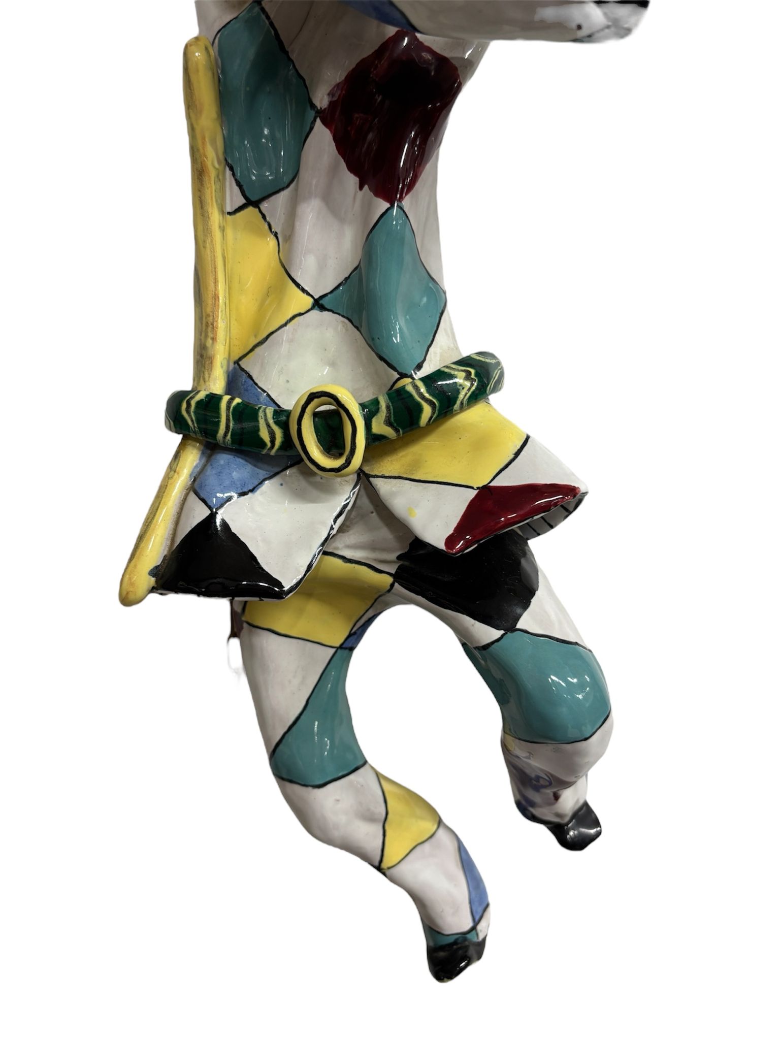 Rara coppia di aplique a due luci in ceramica policroma, raffiguranti arlecchino , firmate nel retro O. Rosa San Paolo Venezia Italy