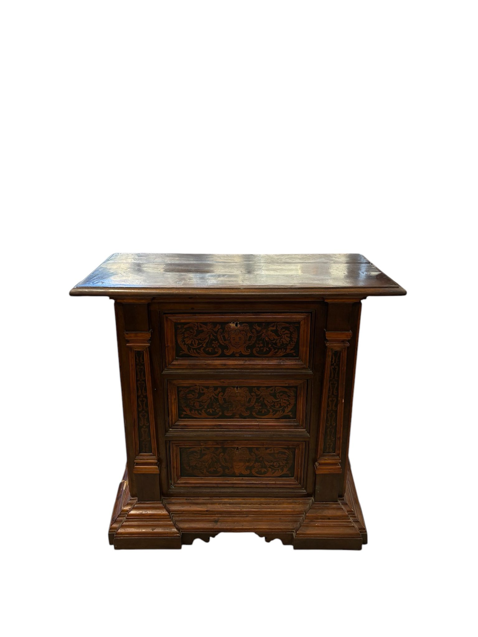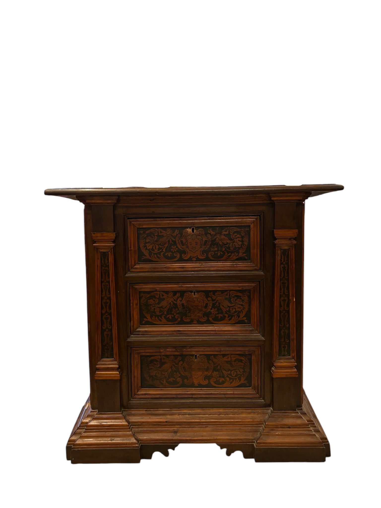Antico cassettone in legno di noce, stile luigi XIV, centro Italia, seconda metà del XIX secolo. Dimensioni: 110 x 105 x 56 cm