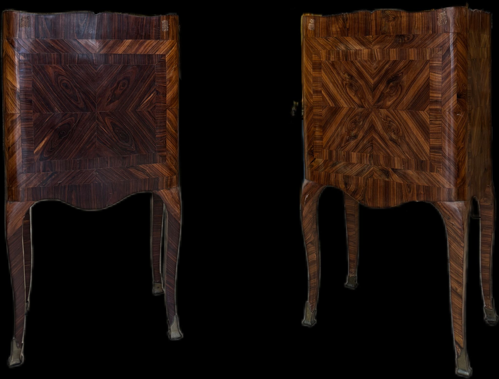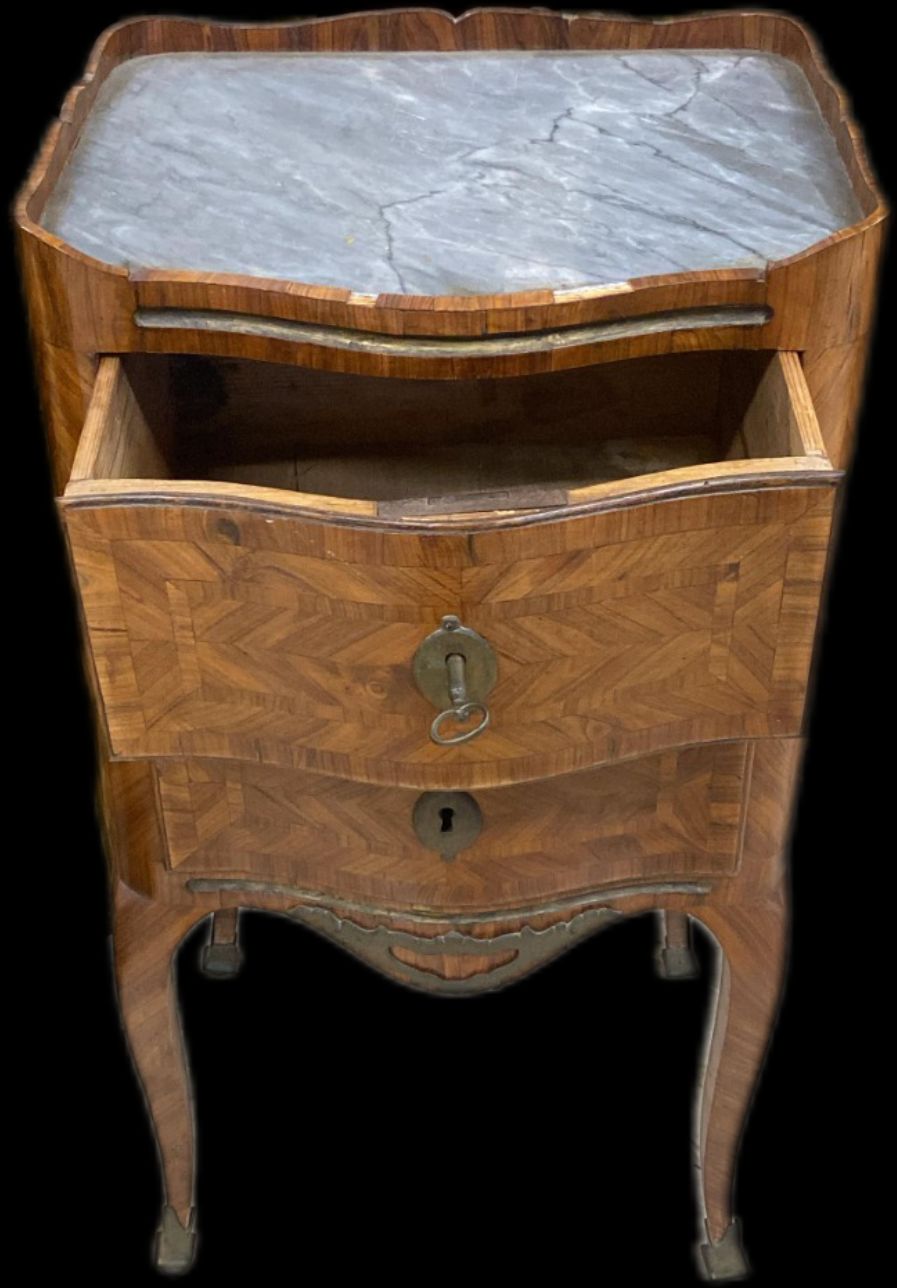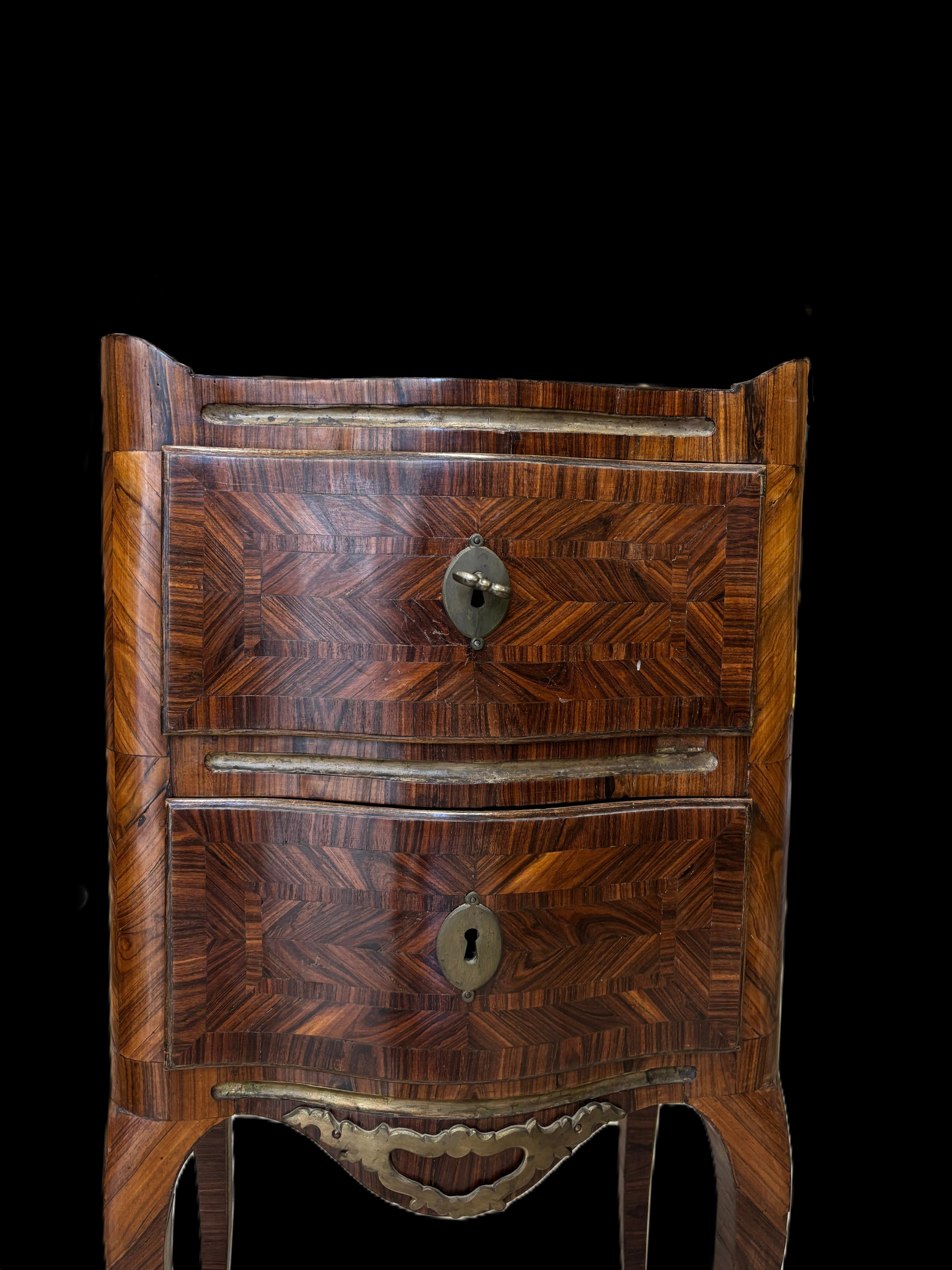 Coppia Di Comodini Luigi XV Lastronati In Ebano