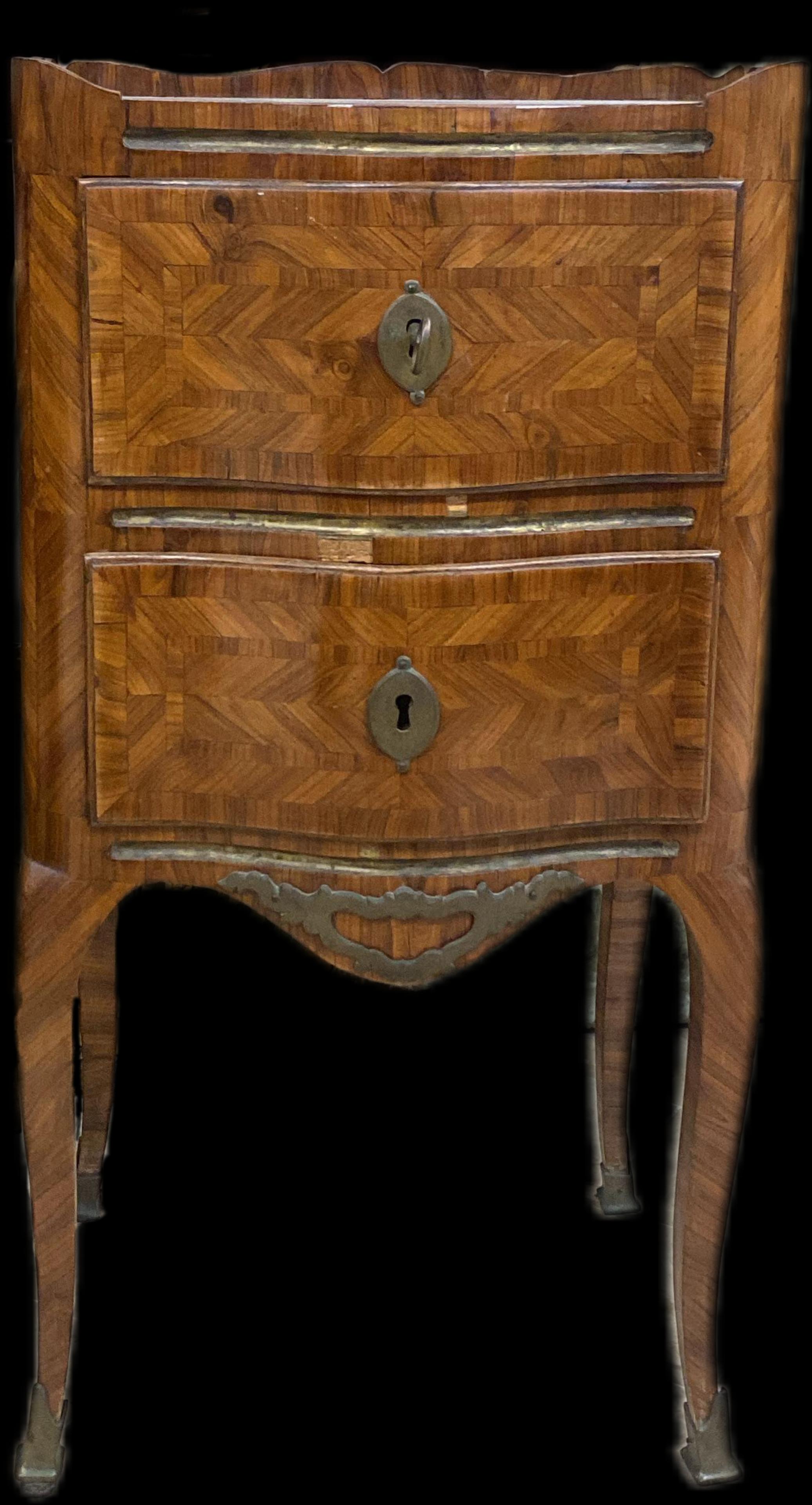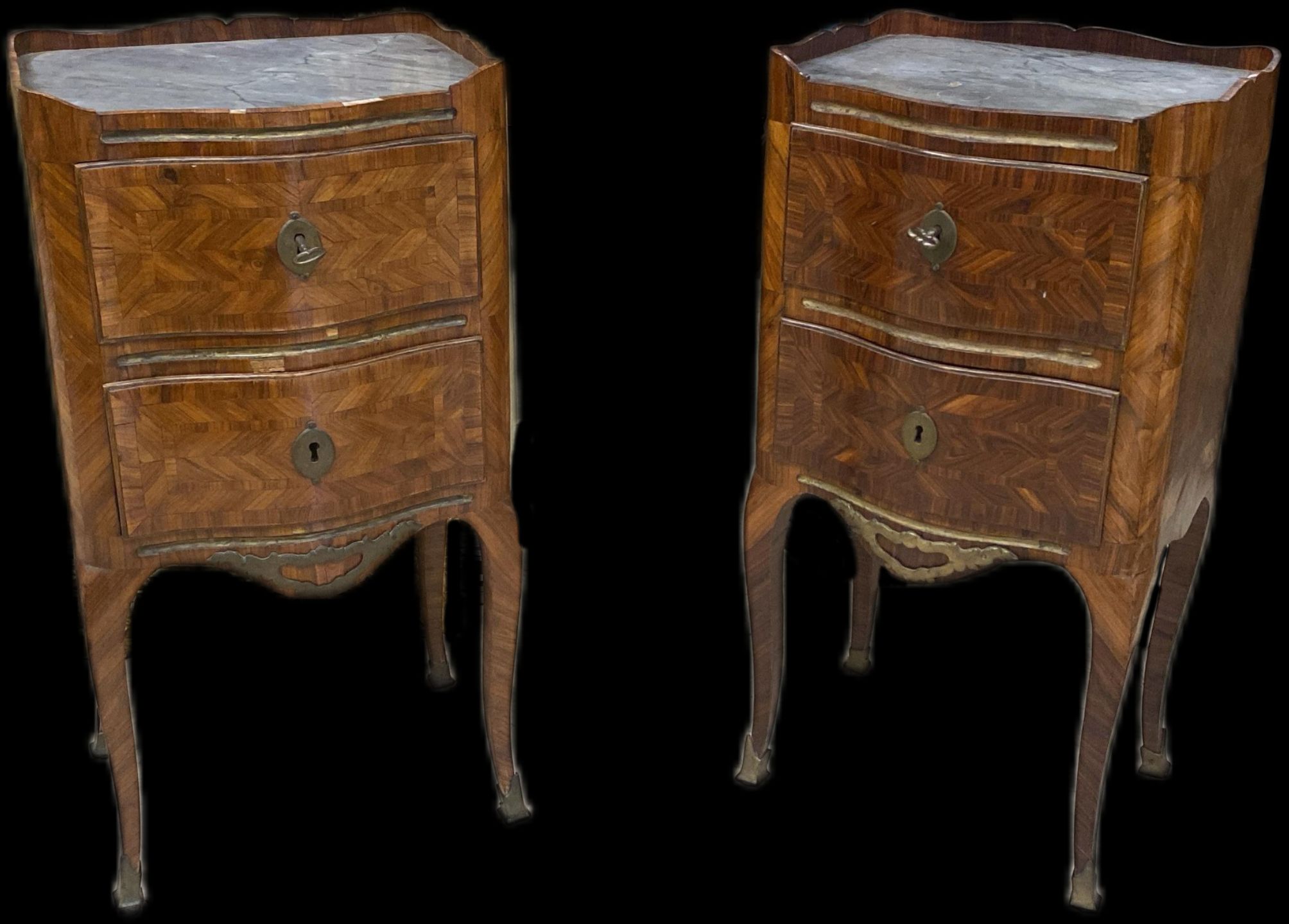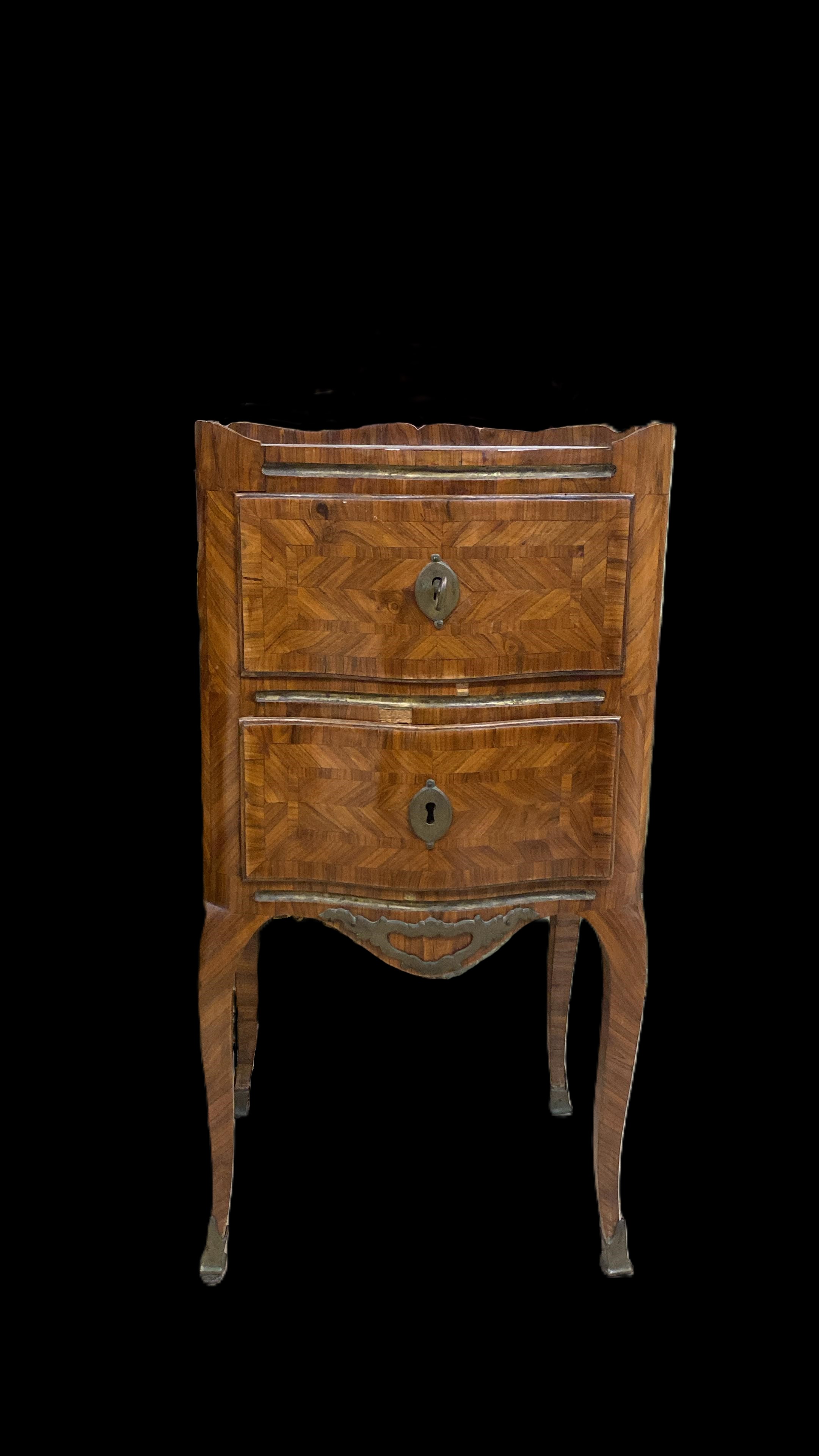 Coppia Di Comodini Luigi XV Lastronati In Ebano
