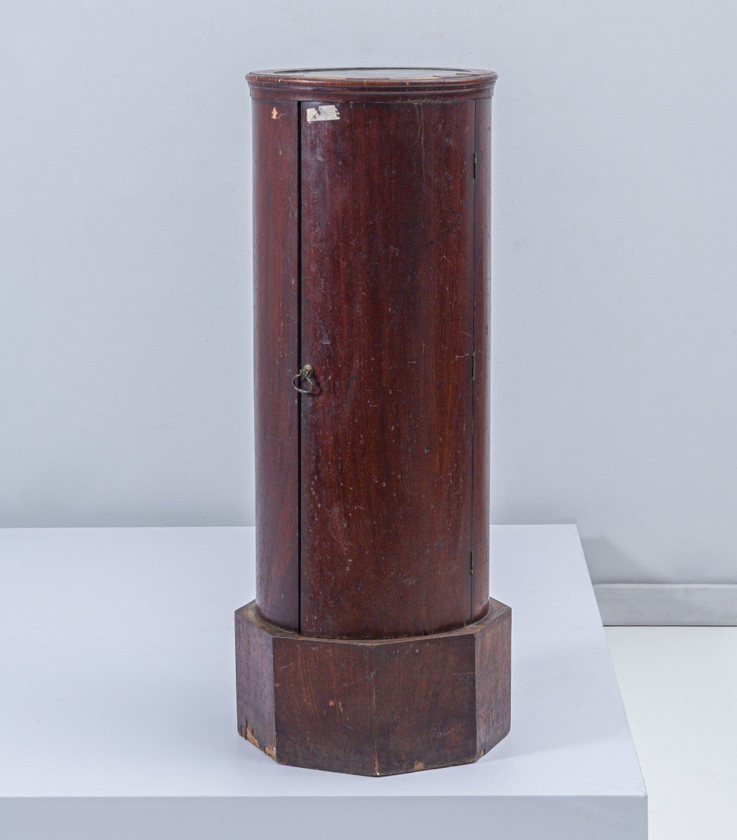 cantone di epoca impero in legno lastronato in mogano con sportello centrale con ripiani in legno a base superiore in marmo portaro Dimensioni: 45x 89 cm