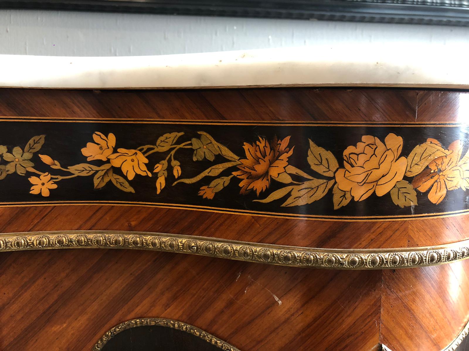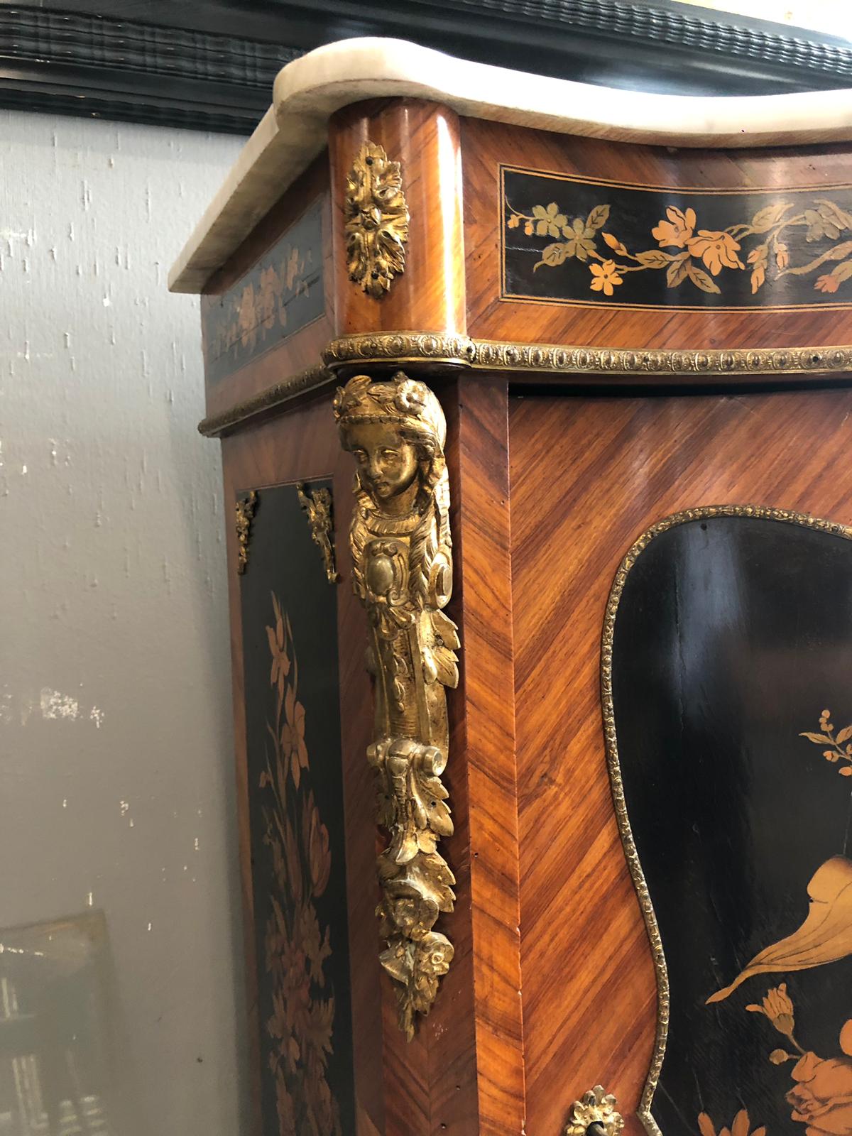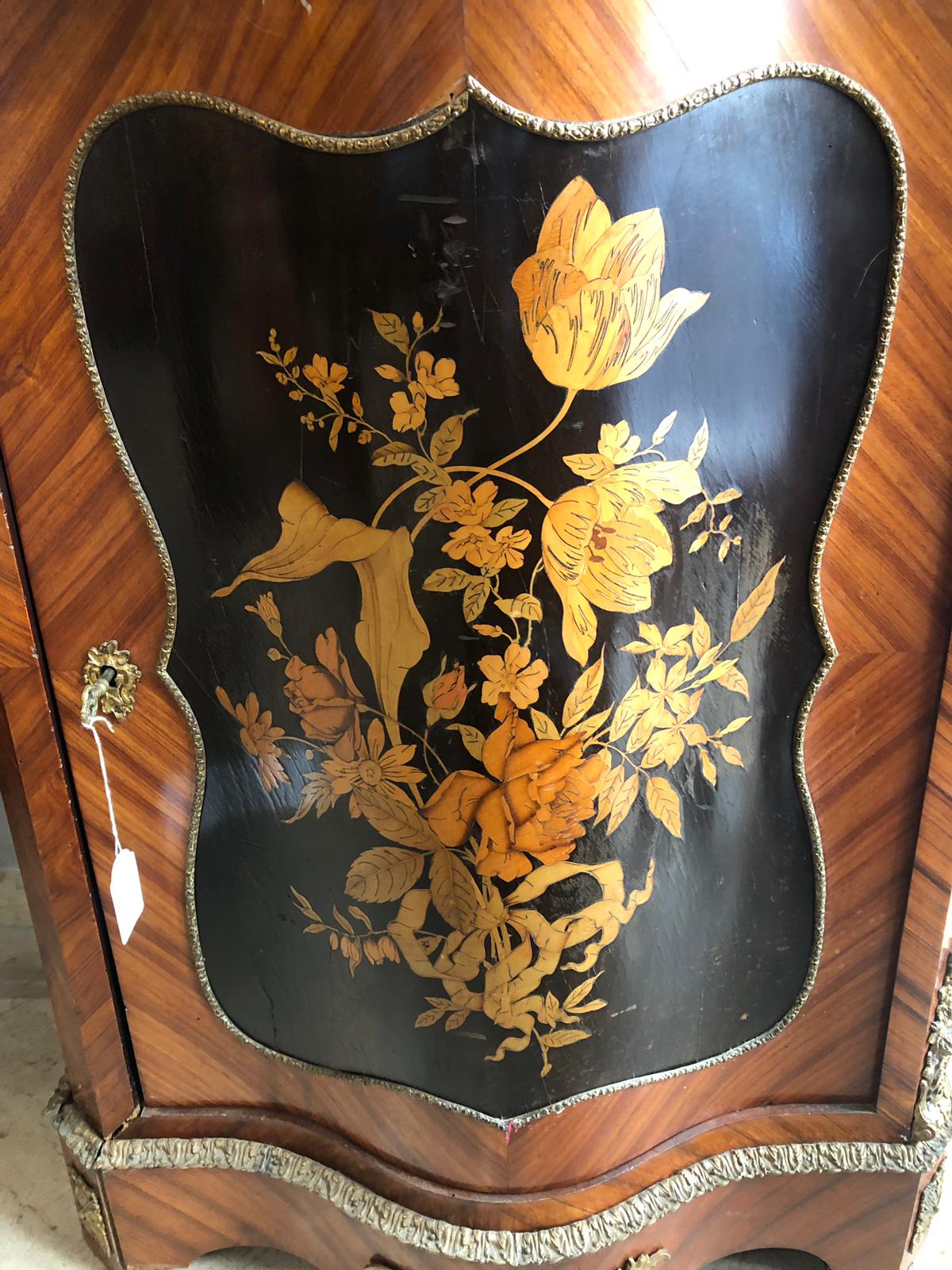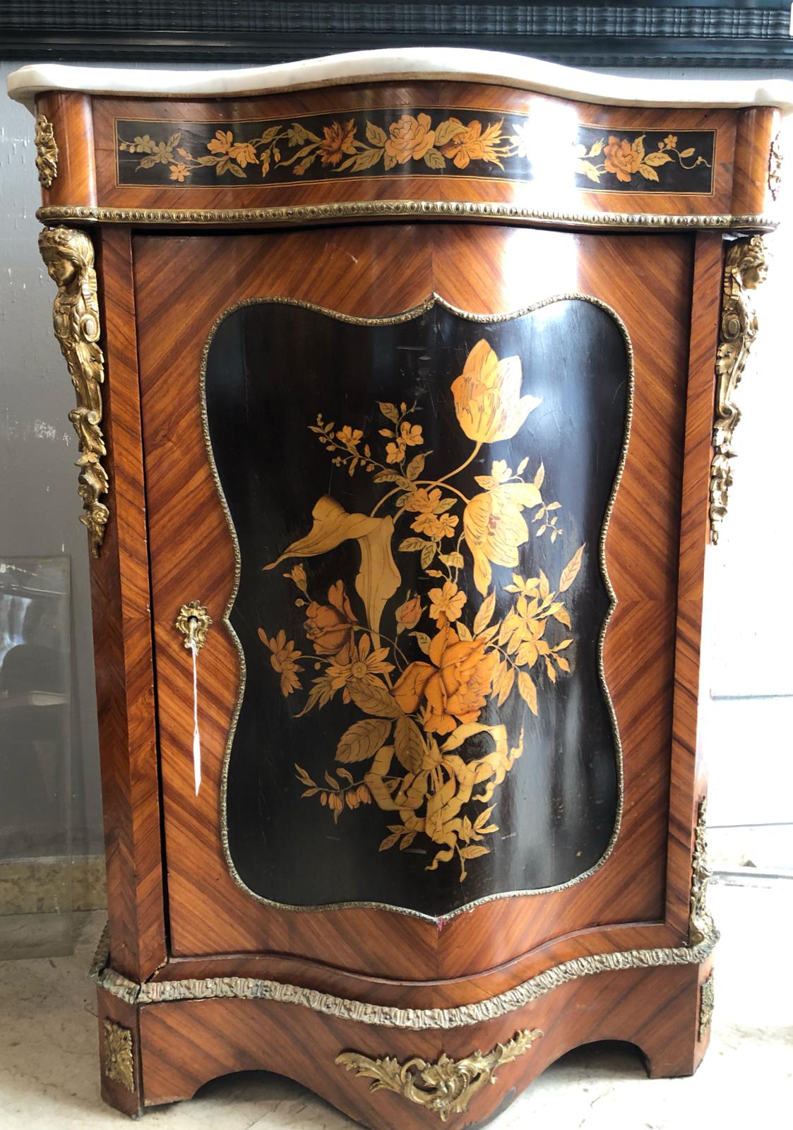 in ebano e con eleganti tarsie floreali in vari legni policromi.