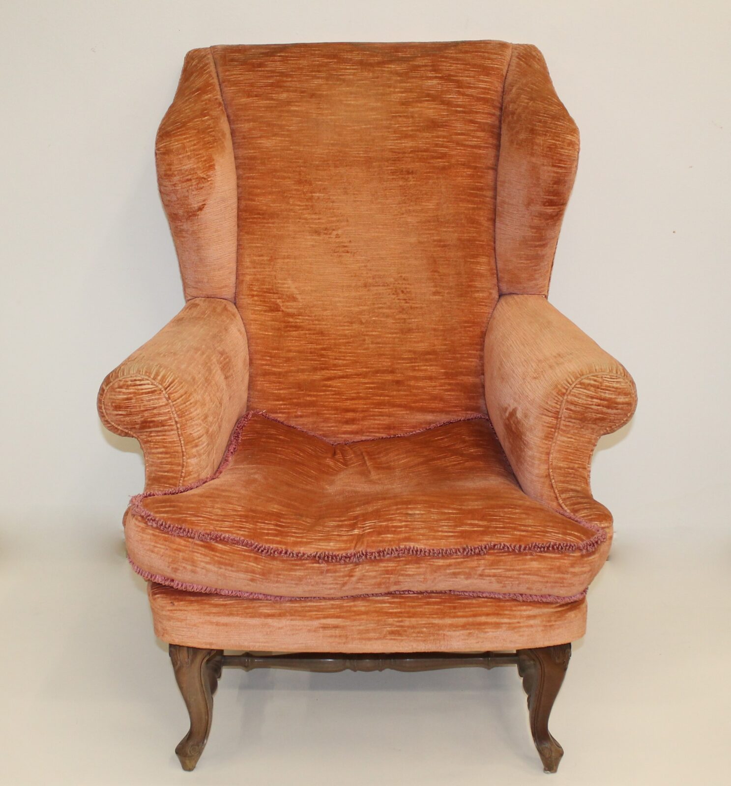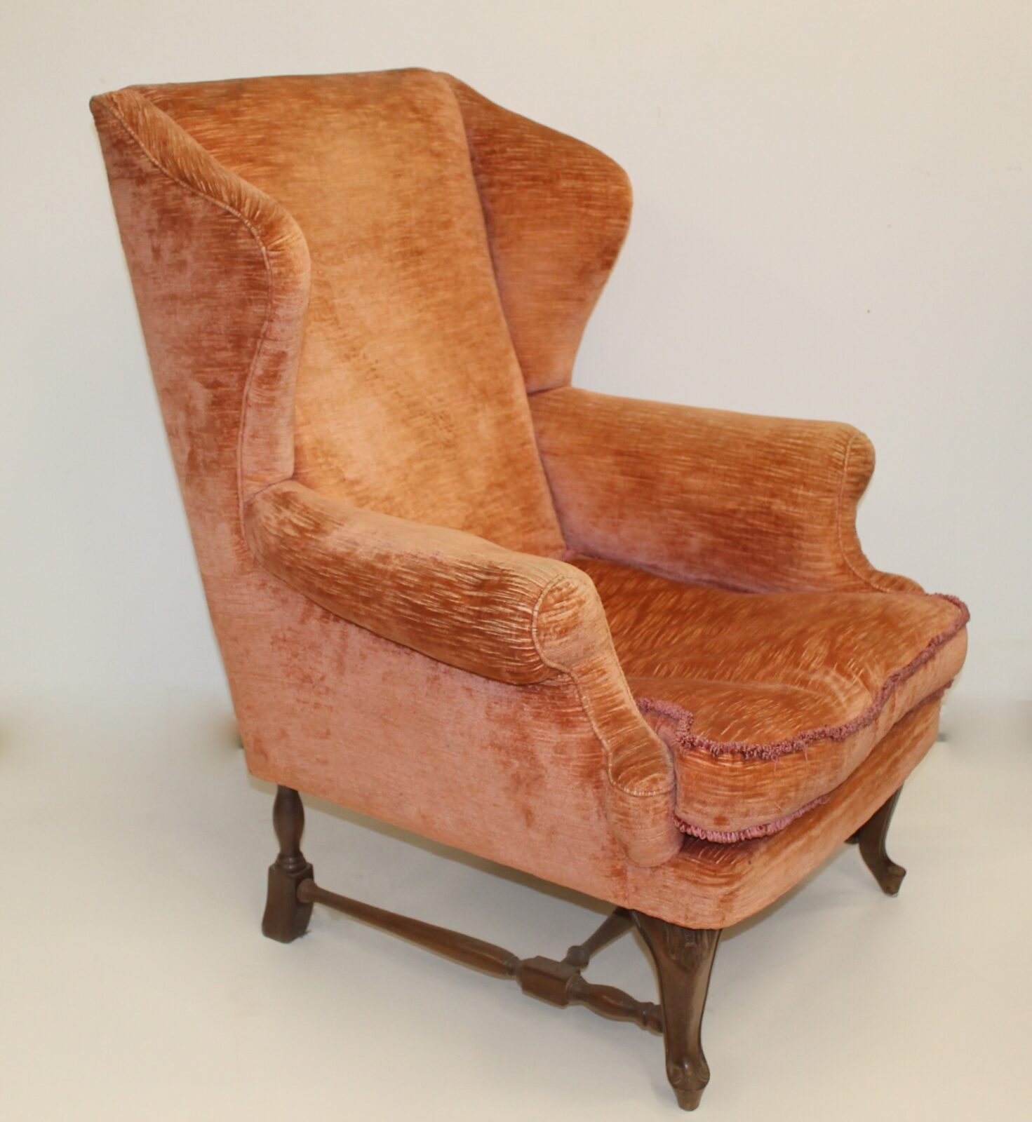 poltrona in velluto rosa, alata in stile georgiano.