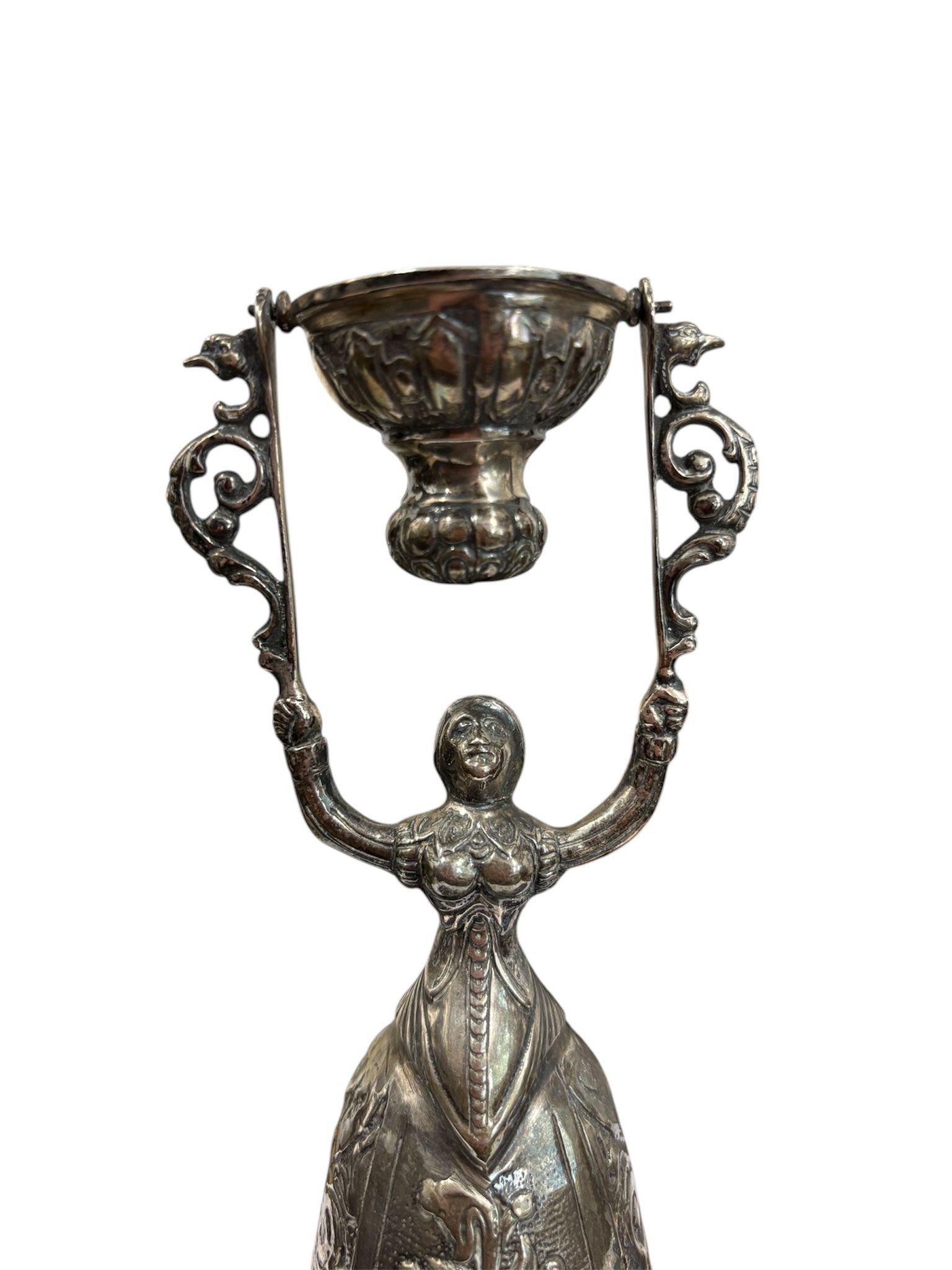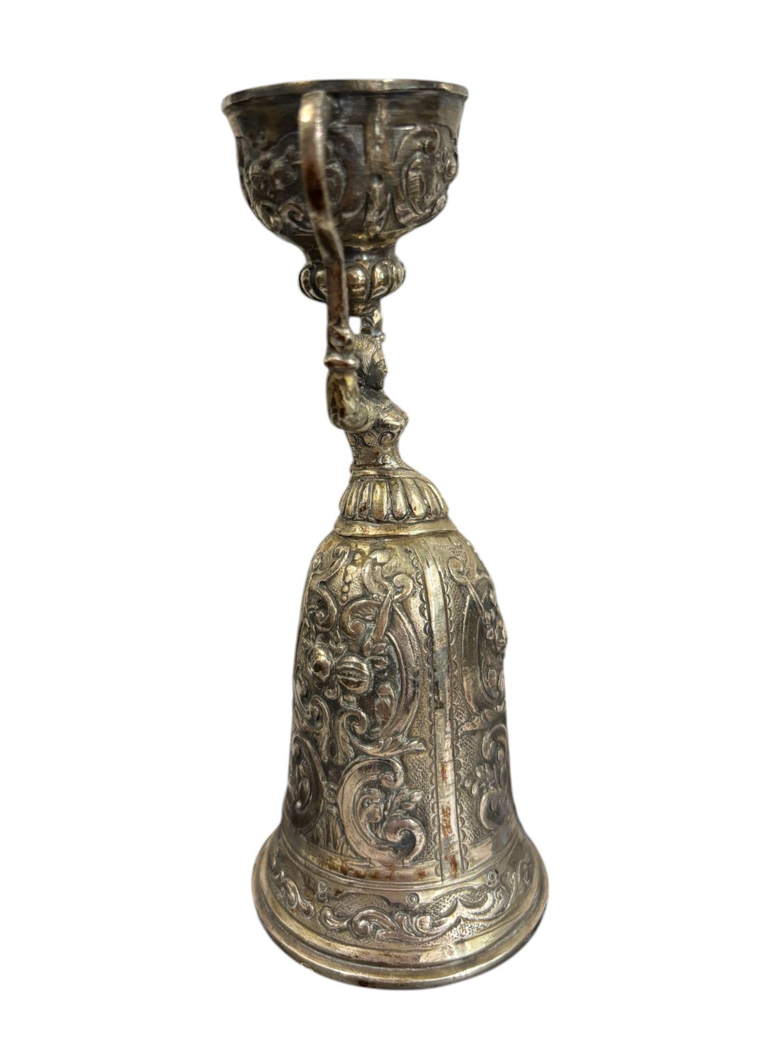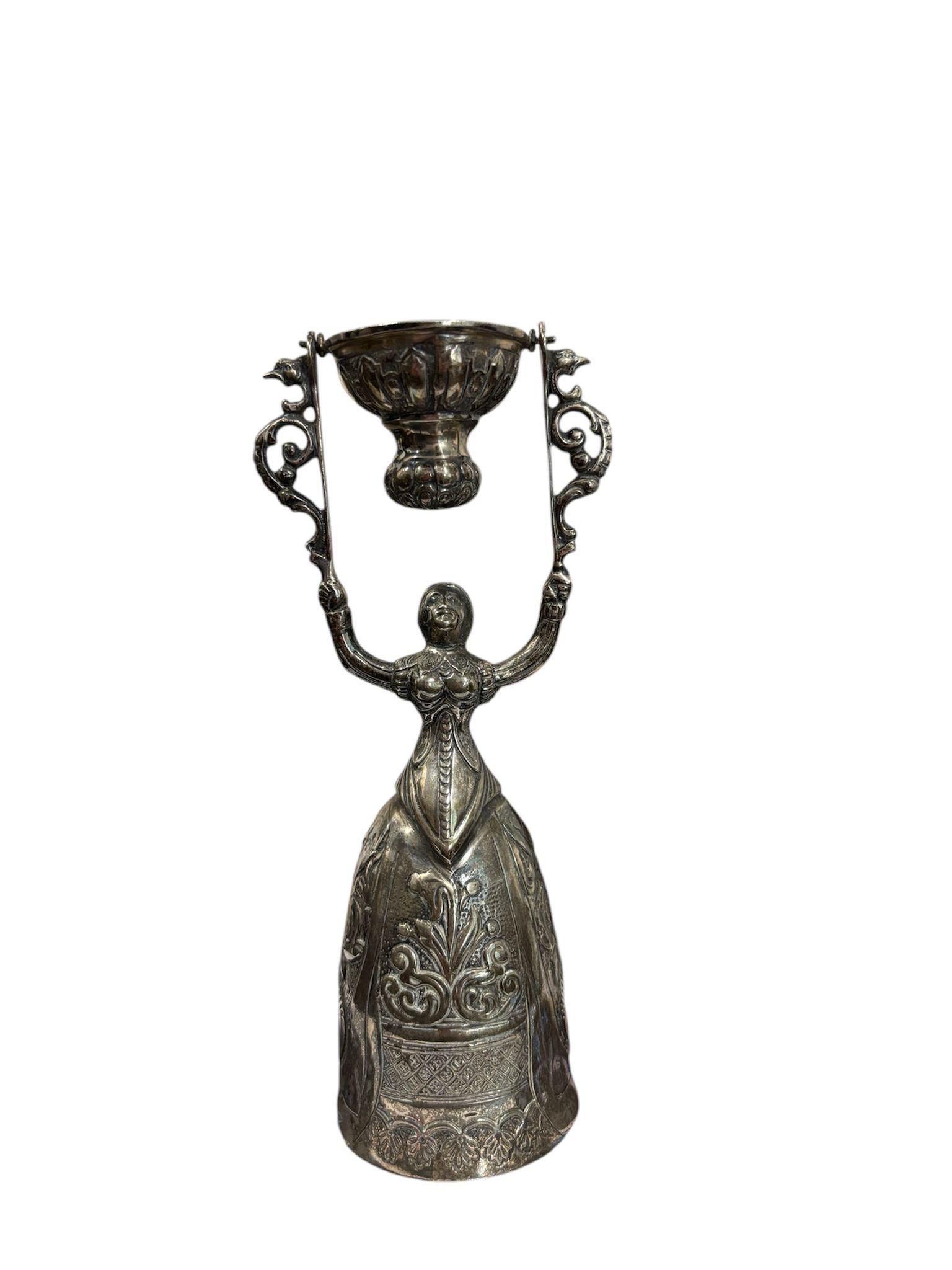 Due coppe dell’amore in argento manifattura tedesca, XIX – XX Sec.corpi sbalzati e cesellati con motivi floreali e volute vegetali. Dimensioni: 16.5 x 5.5 cm 11.5 x 4.5 cm