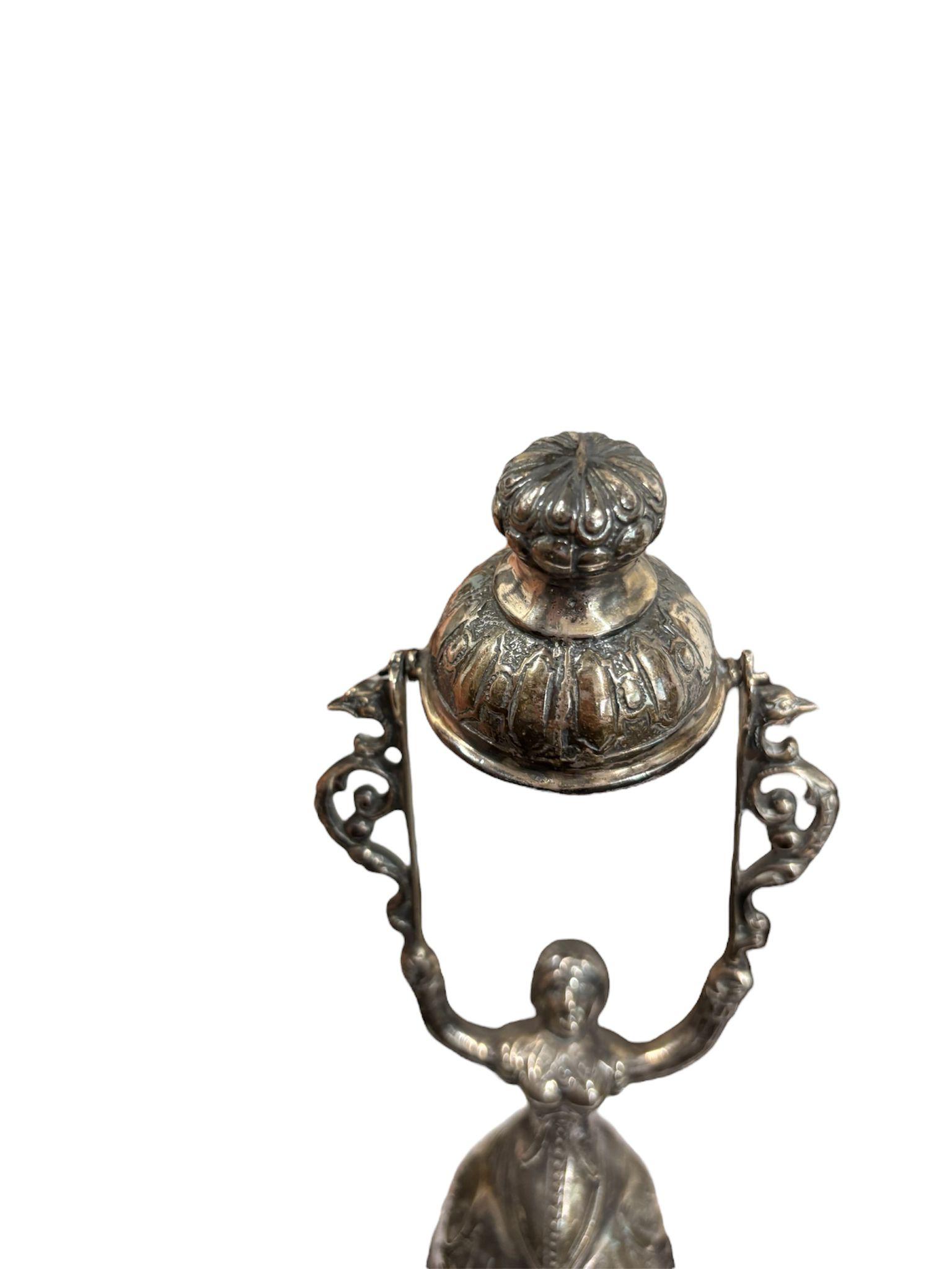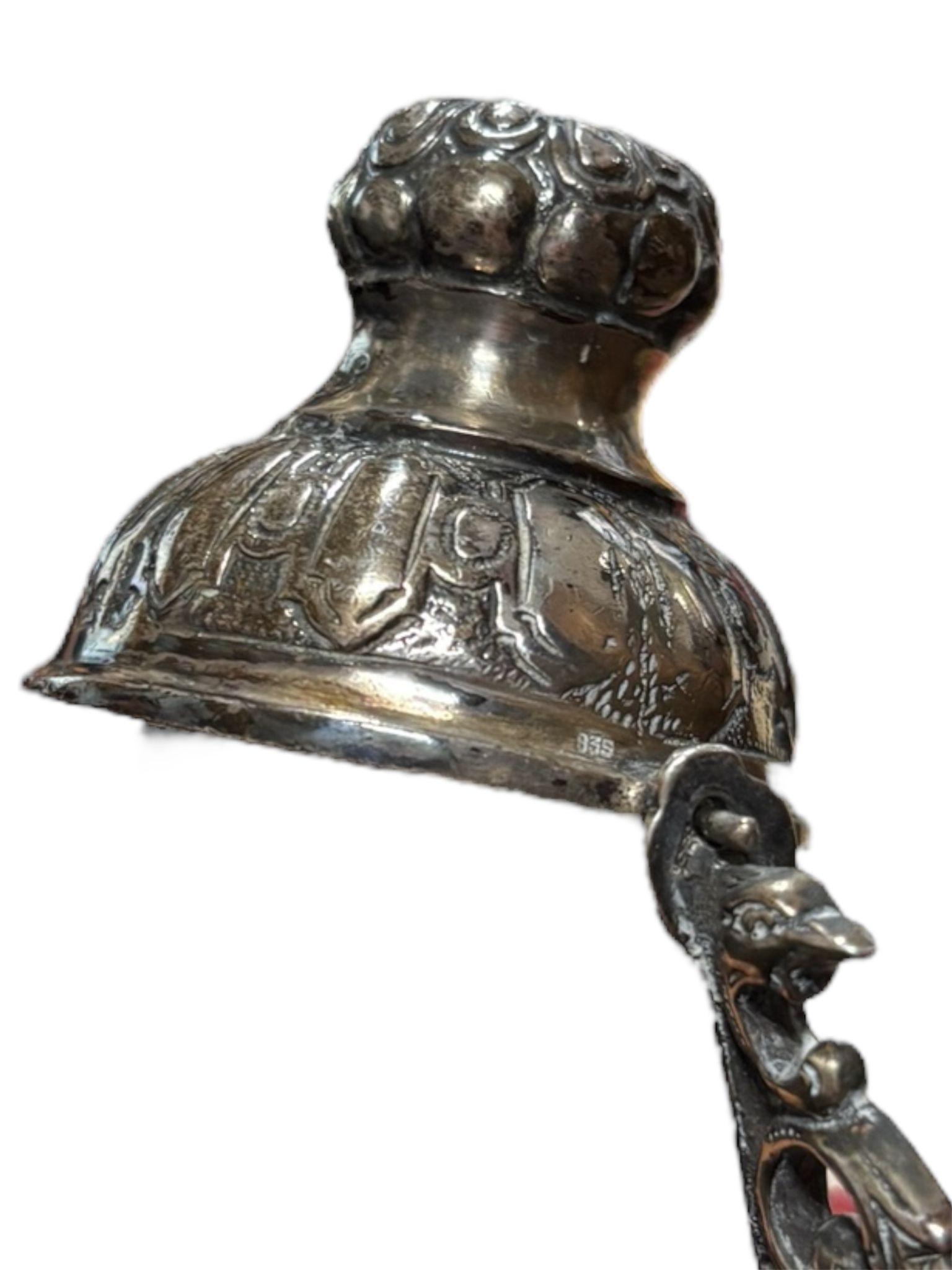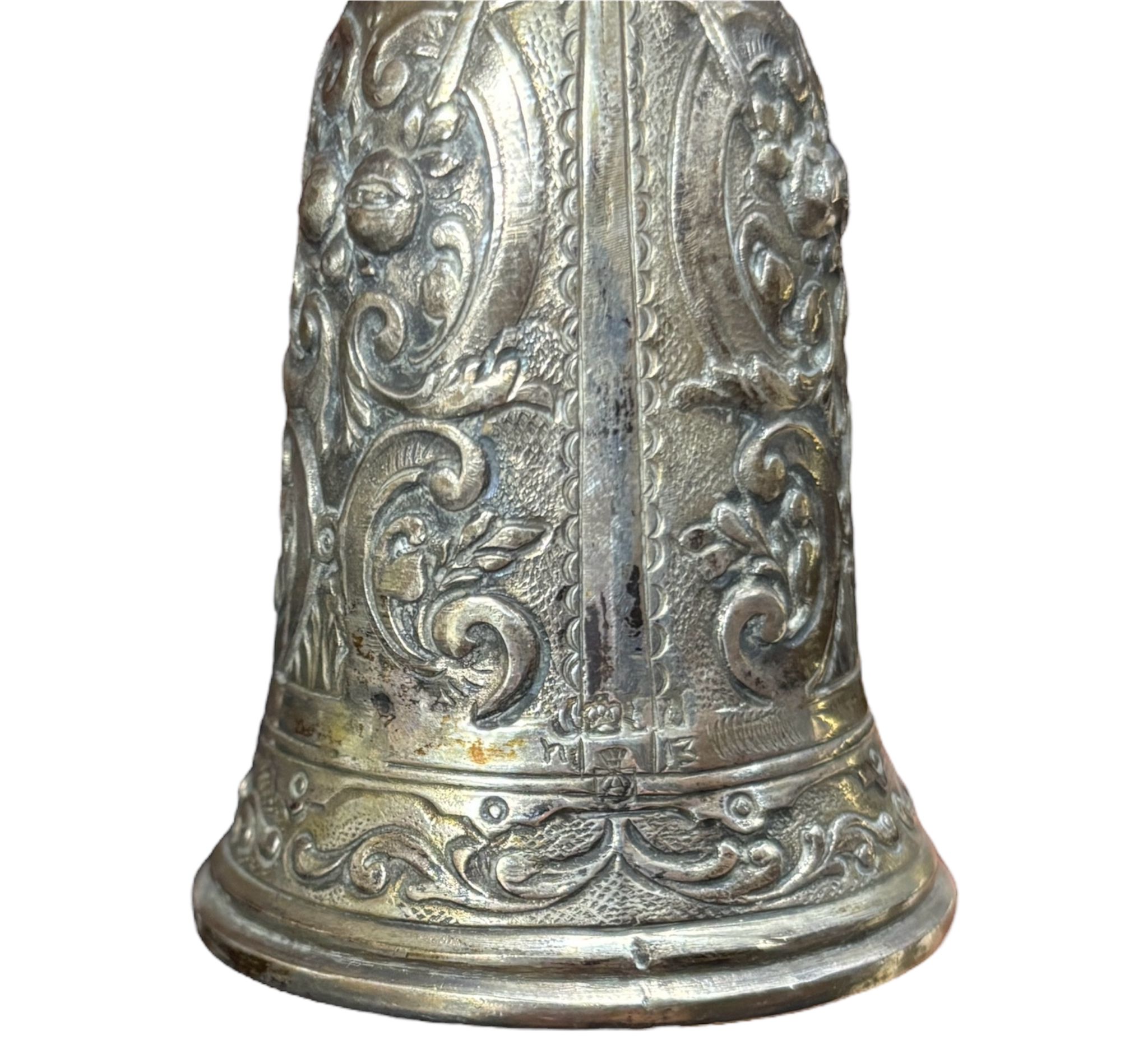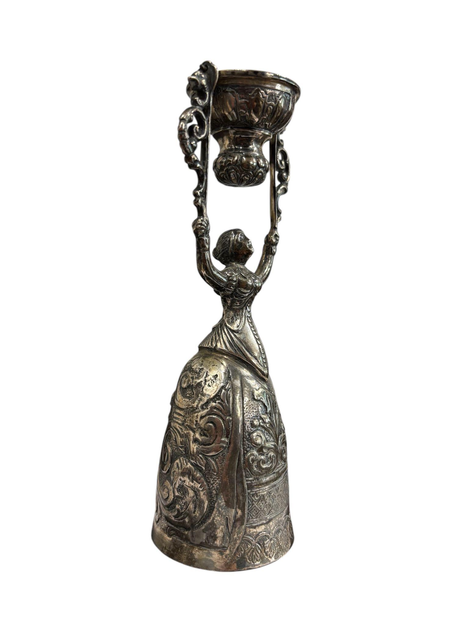 Due coppe dell’amore in argento manifattura tedesca, XIX – XX Sec.corpi sbalzati e cesellati con motivi floreali e volute vegetali. Dimensioni: 16.5 x 5.5 cm 11.5 x 4.5 cm