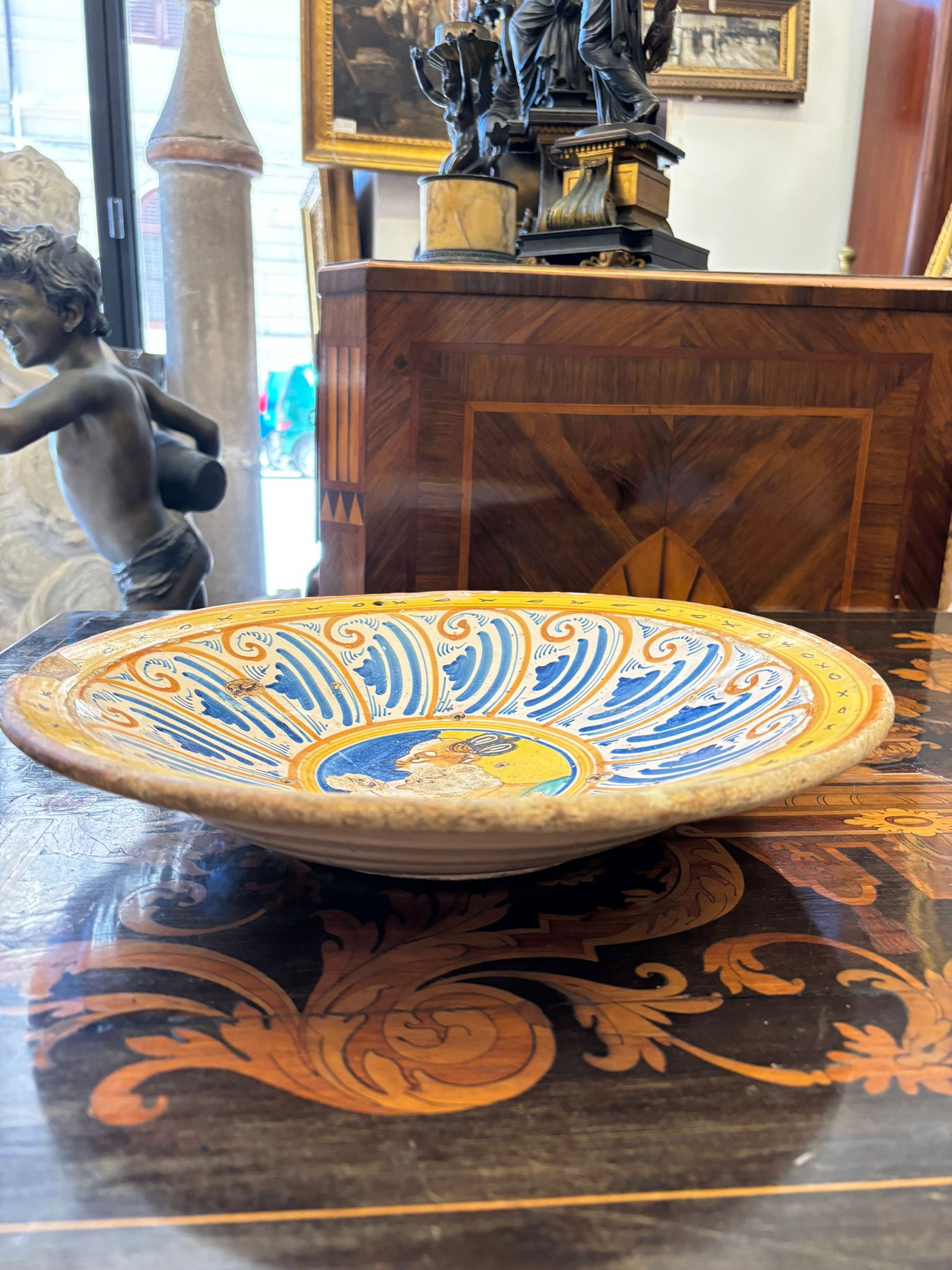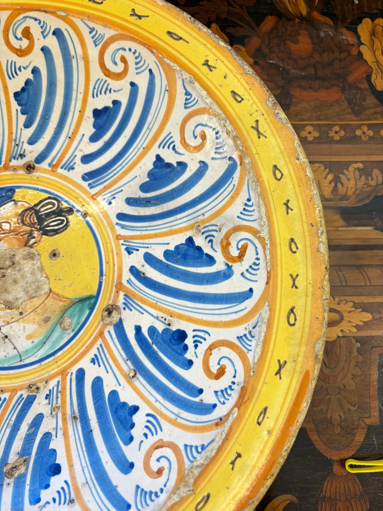 Piatto in maiolica di Montelupo con figura centrale, fine sec.XVI Dimensioni: 36 cm x 8 cm
