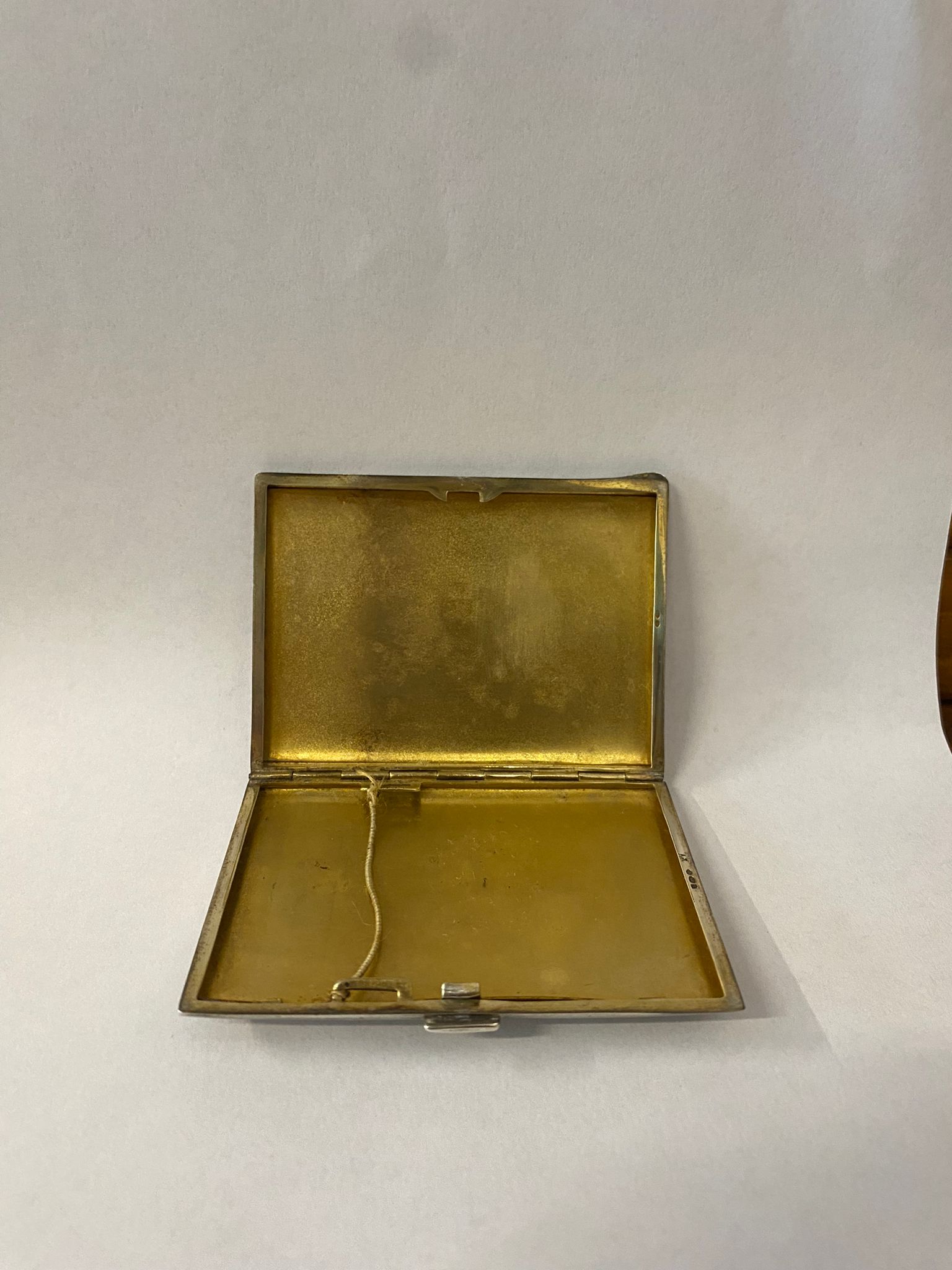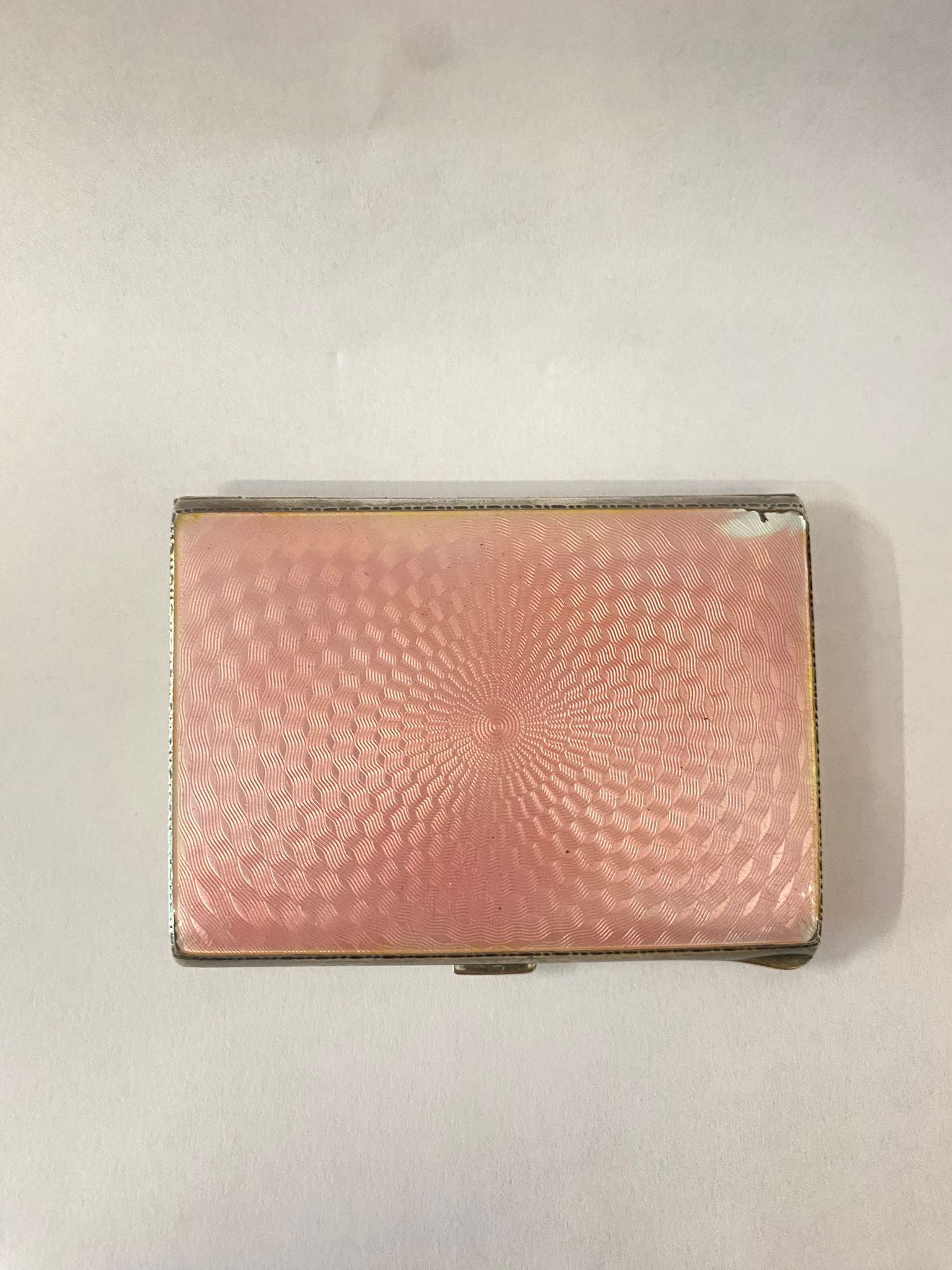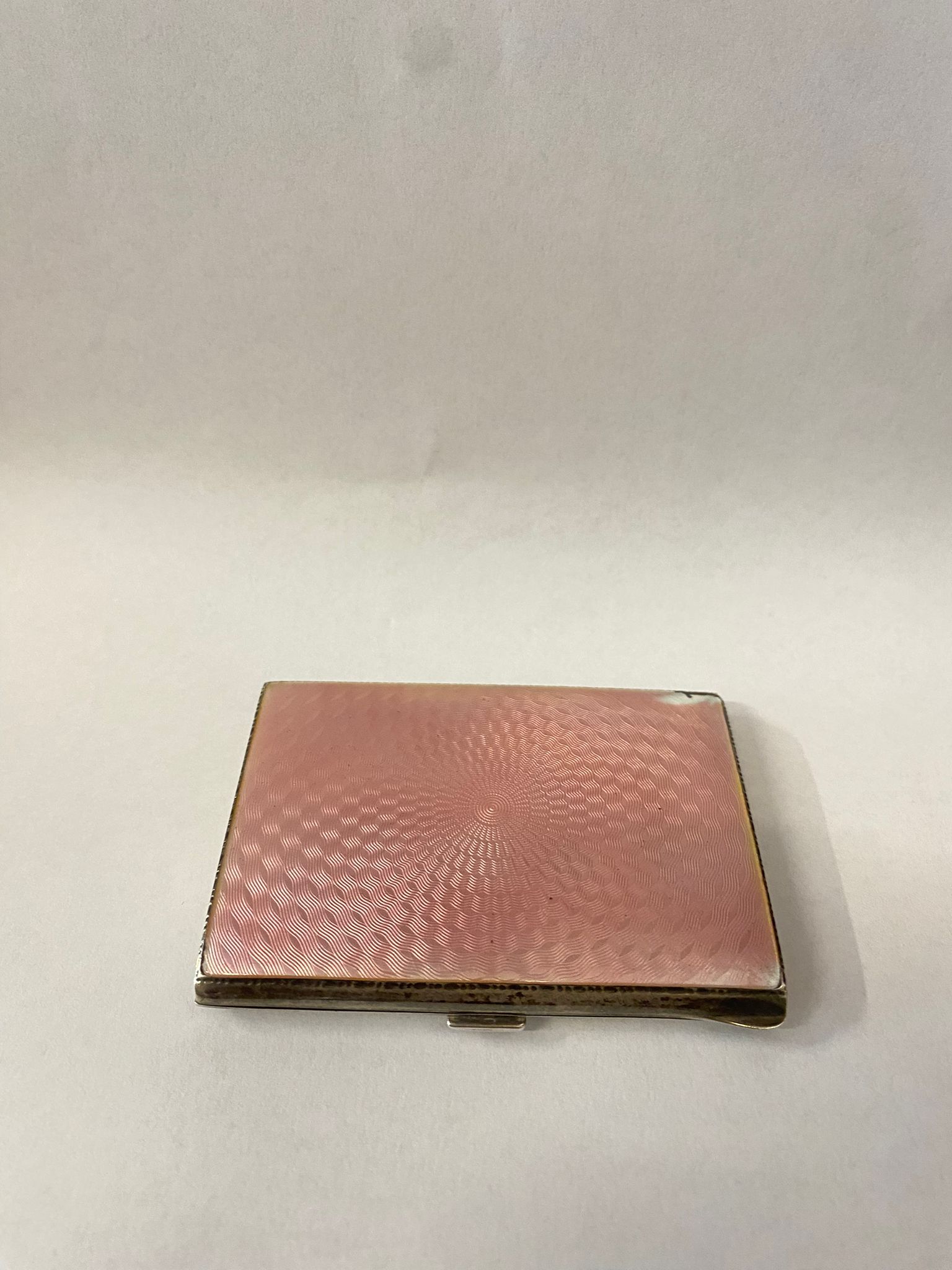 Porta sigarette in argento e smalti rosa.