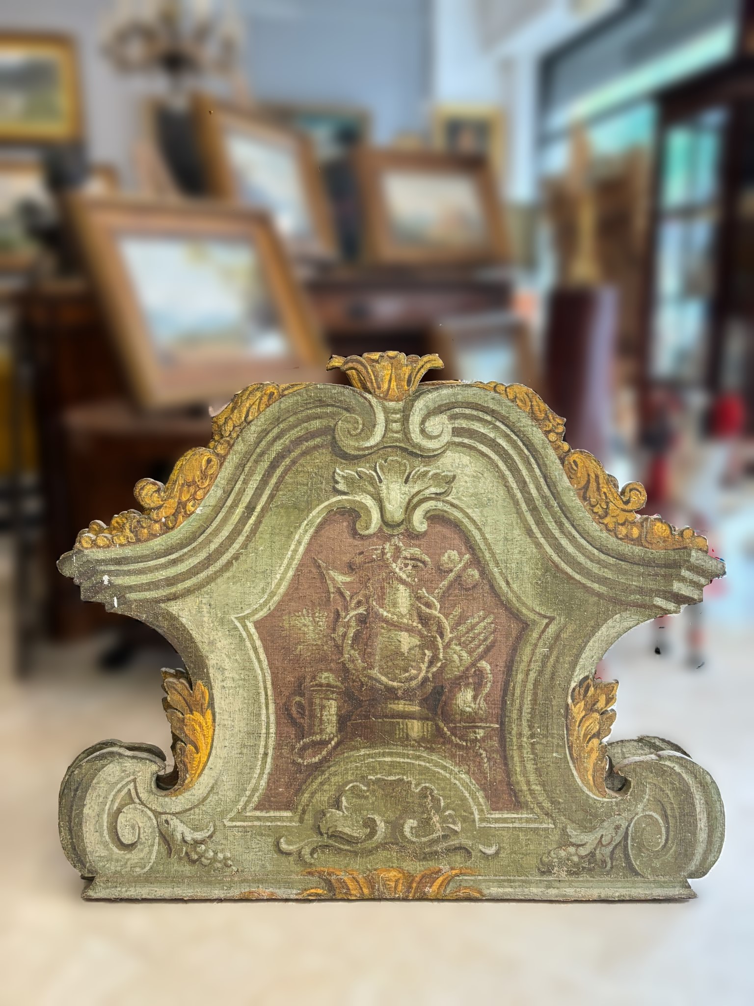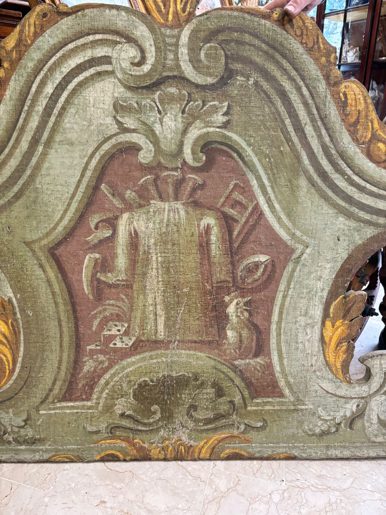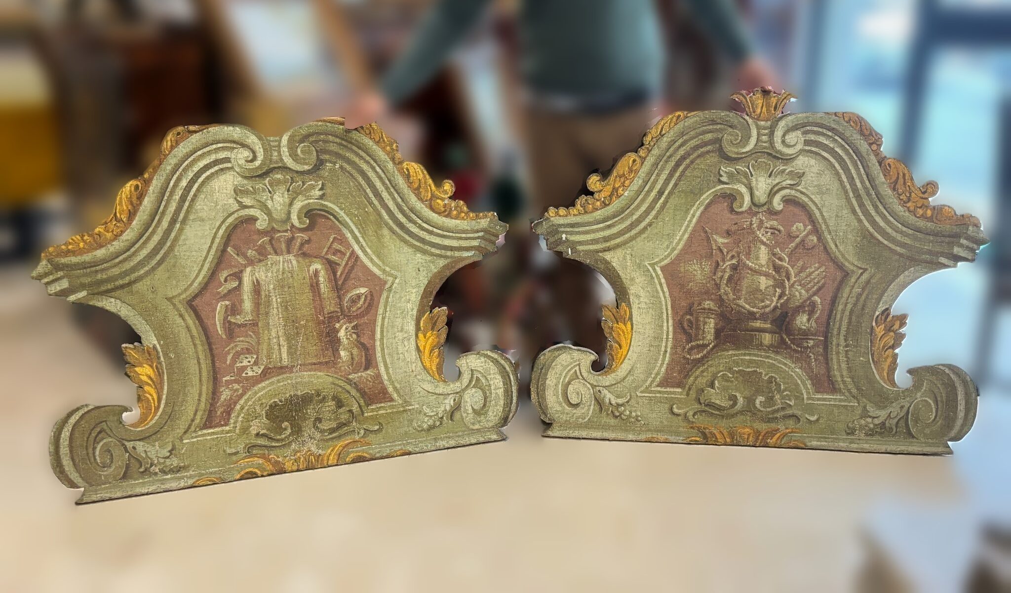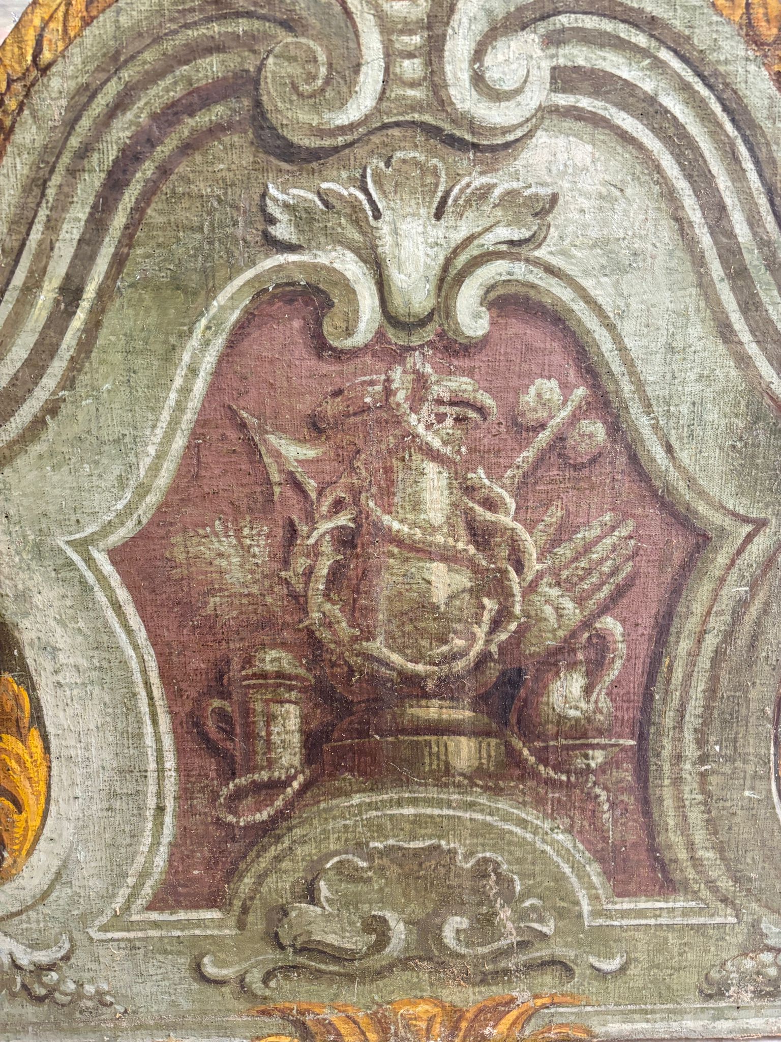coppia di sovrapporte dipinti ad olio su tela applicata su legno, Sicilia,seconda metà del XVIII secolo. Dimensioni: 114 cm x 94 cm x 2 cm