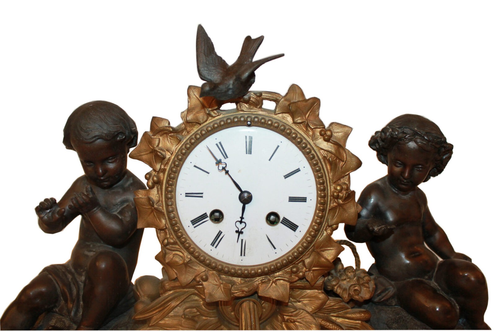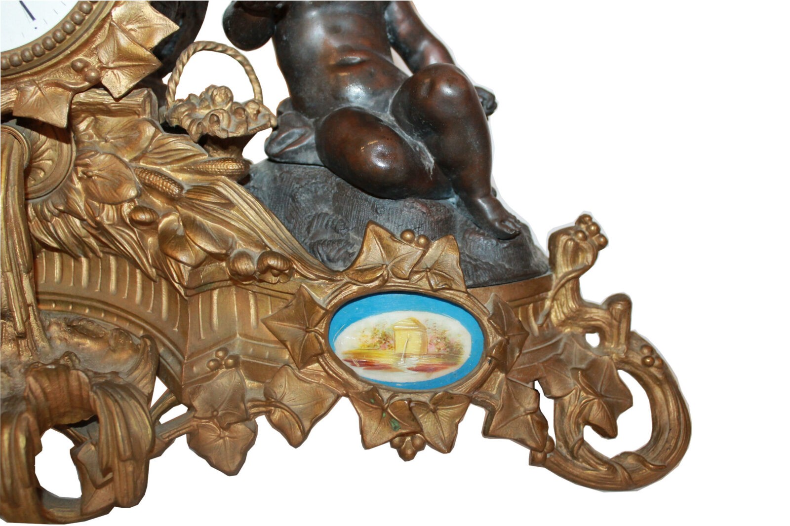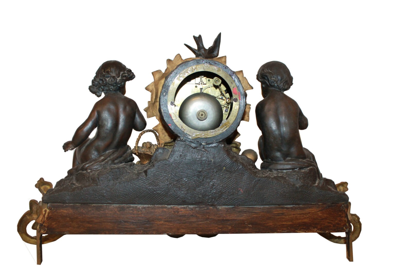 Orologio d’ appoggio in bronzo con placche dipinte,