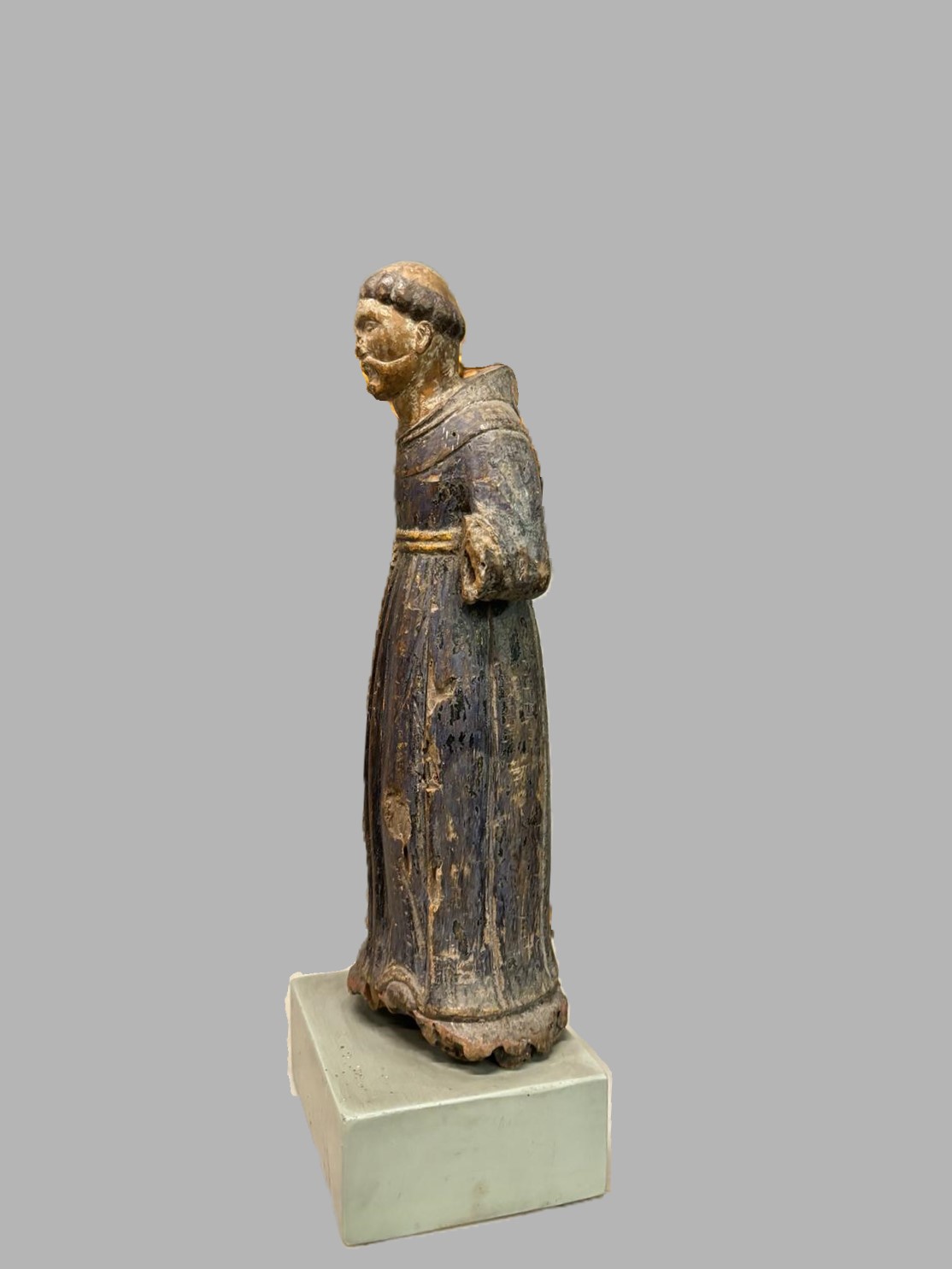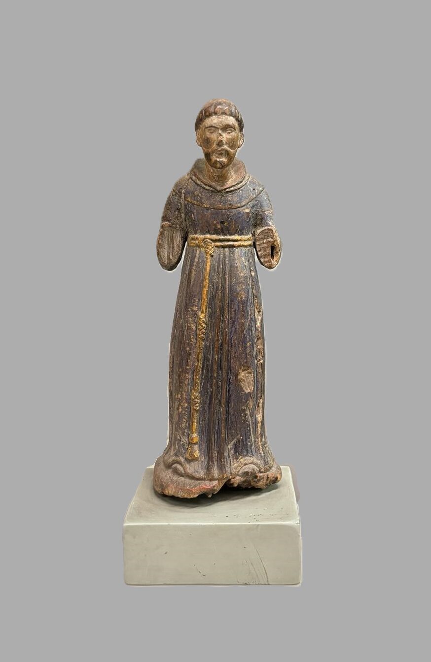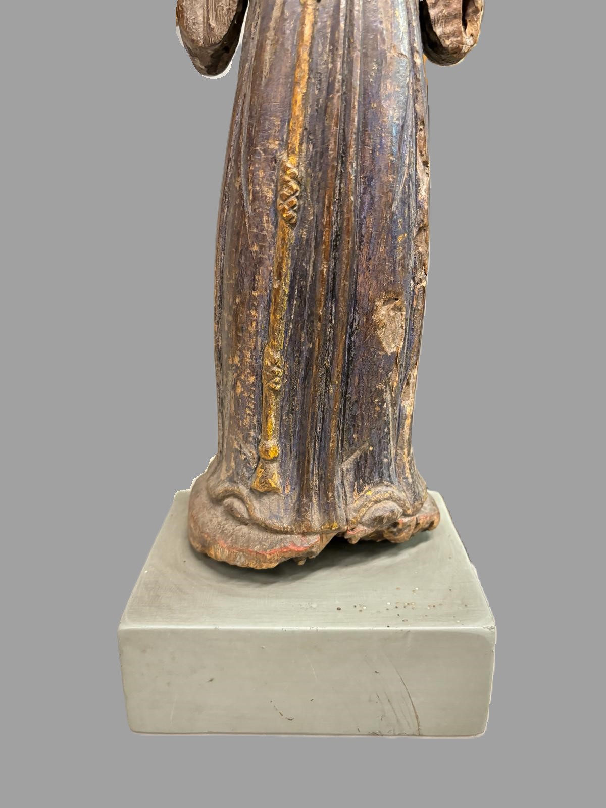 Scultura in legno Polycoma, raffigurante una figura religiosa. Italia XVI sec. Dimensioni:36x10x13 cm