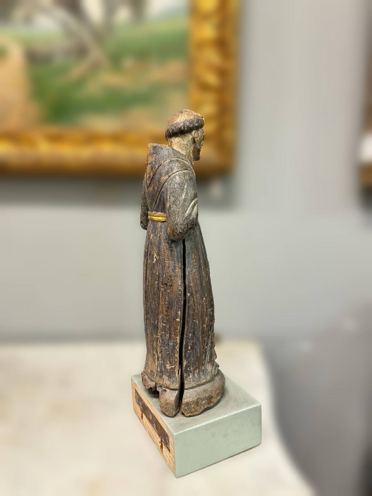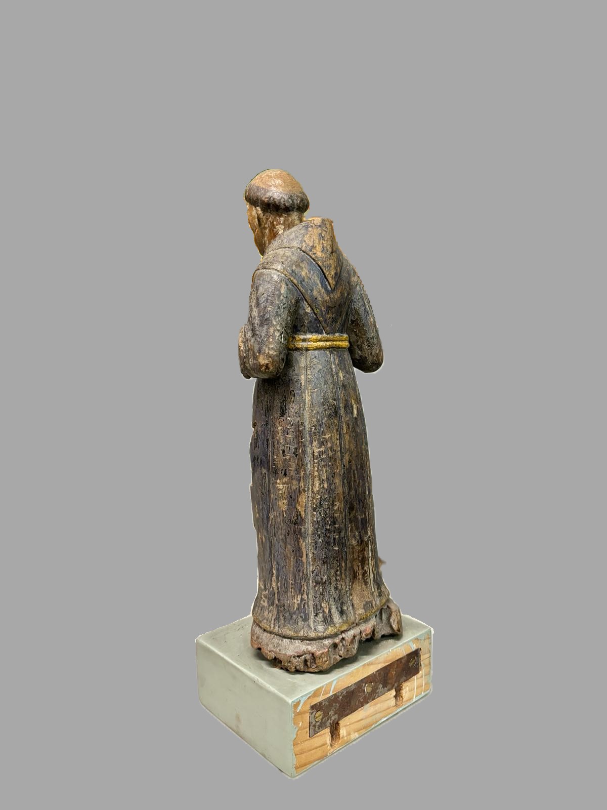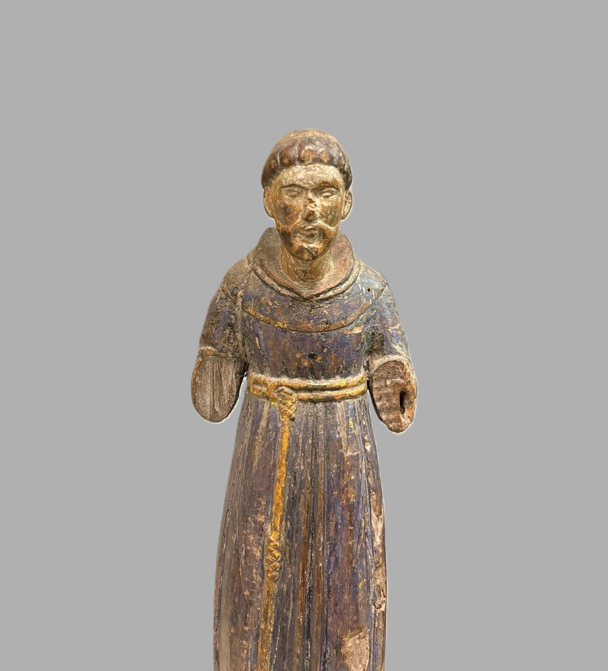 Scultura in legno Polycoma, raffigurante una figura religiosa. Italia XVI sec. Dimensioni:36x10x13 cm