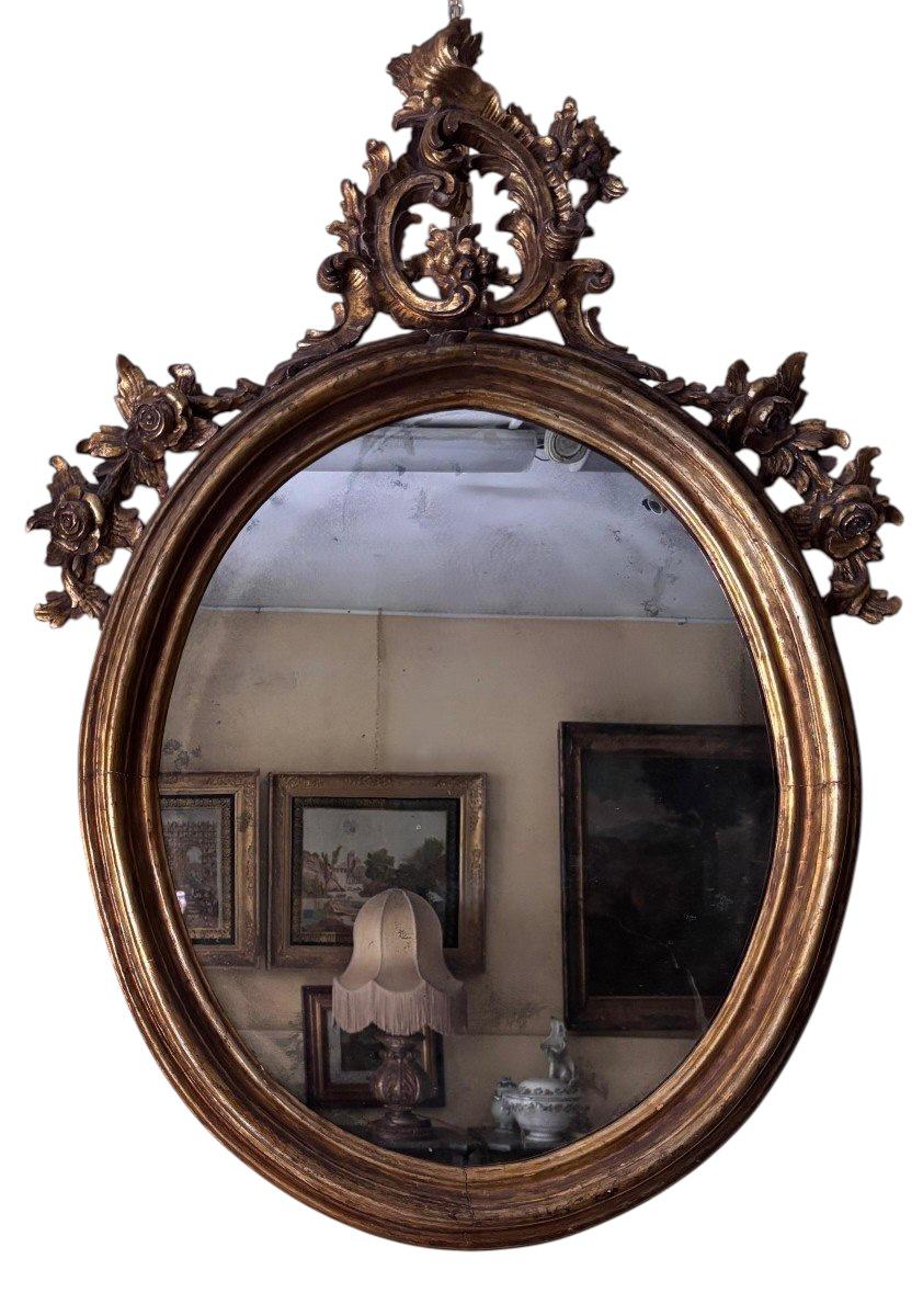 Specchiera stile Luigi XV , con doratura in foglia argento e mecca. Sicilia seconda metà del xviii secolo Dimensioni: 90 x 120 cm